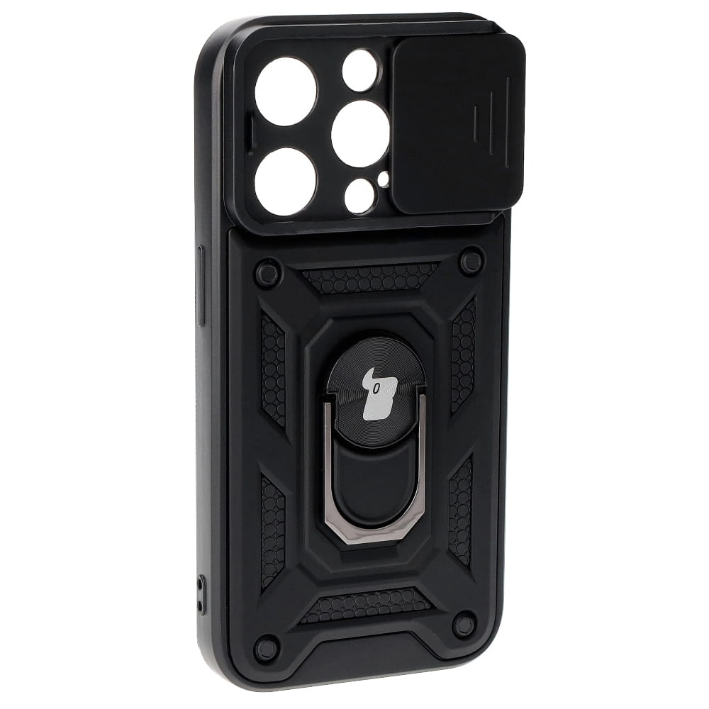Etui Bizon Case CamShield Ring do iPhone 15 Pro, czarne