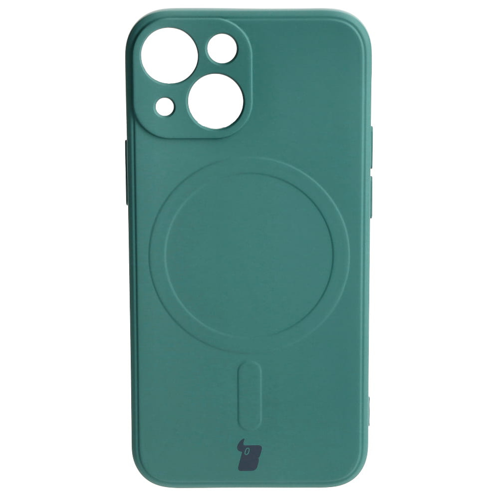 - Silikonowe etui z pierścieniem magnetycznym Bizon Silicone Magnetic Sq do Apple iPhone 13 Mini, ciemnozielone