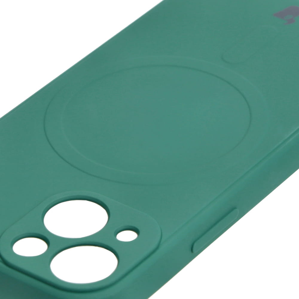 Etui Bizon Case Silicone Magnetic Sq do iPhone 13 Mini, ciemnozielone
