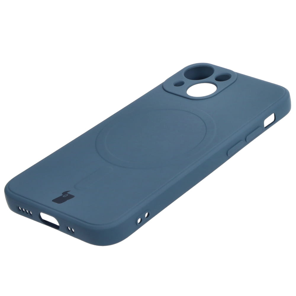 - Silikonowe etui z pierścieniem magnetycznym Bizon Silicone Magnetic Sq do Apple iPhone 13 Mini, granatowe