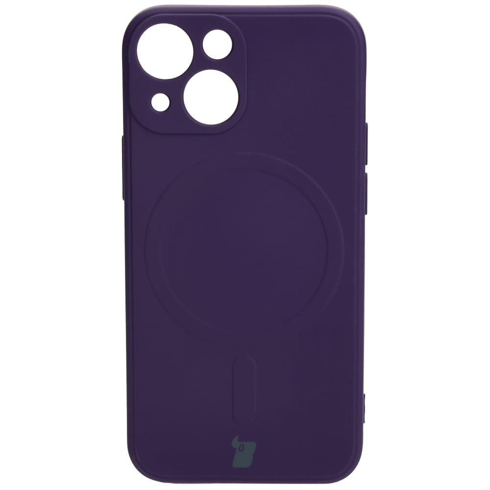 - Silikonowe etui z pierścieniem magnetycznym Bizon Silicone Magnetic Sq do Apple iPhone 13 Mini, śliwkowe