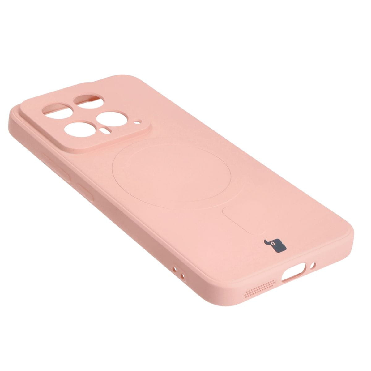 - Silikonowe etui z pierścieniem magnetycznym Bizon Silicone Magnetic Sq do Xiaomi 14, jasnoróżowe