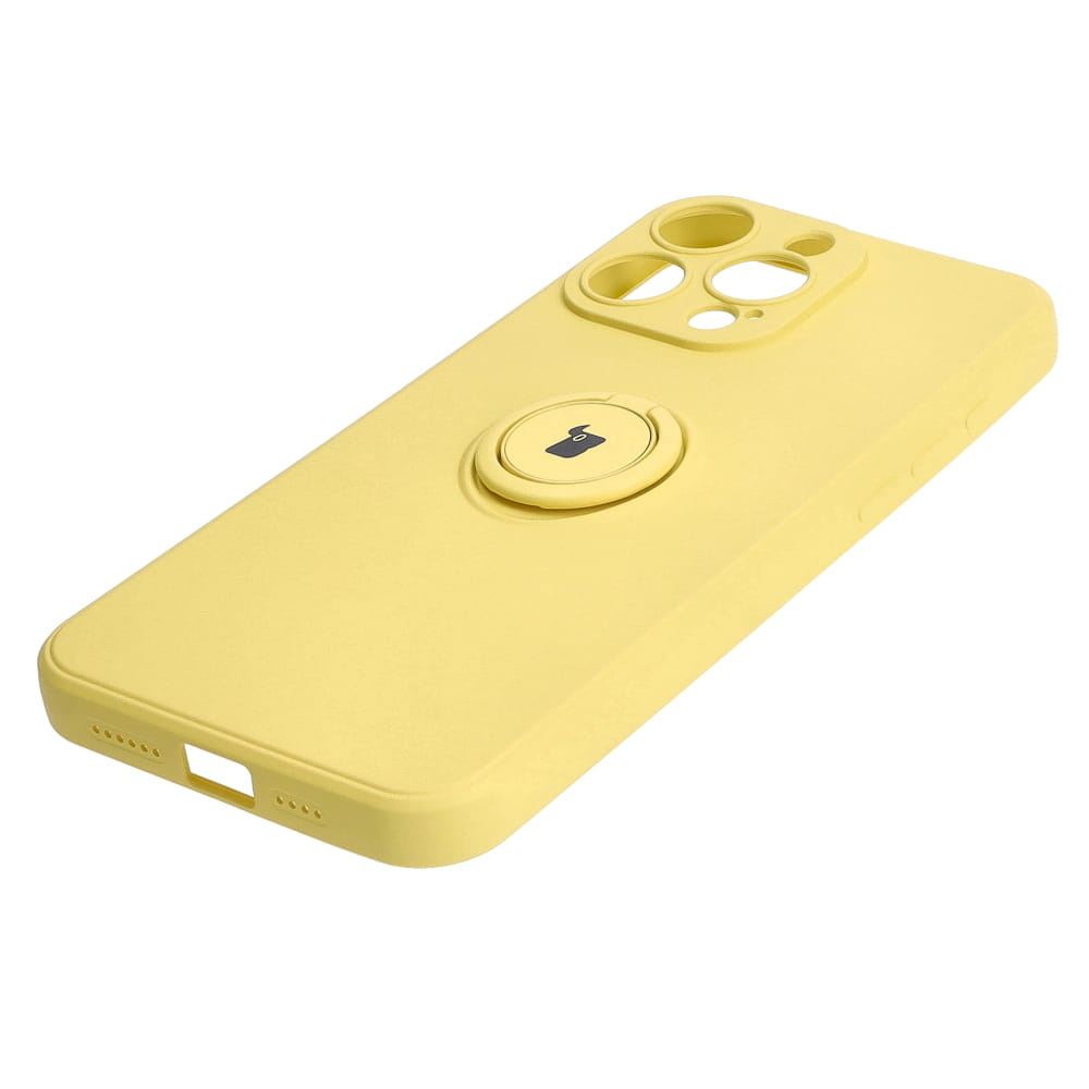 - Etui z pierścieniem marki Bizon Case z serii Silicone Ring dla Apple iPhone 15 Pro Max, żółte.