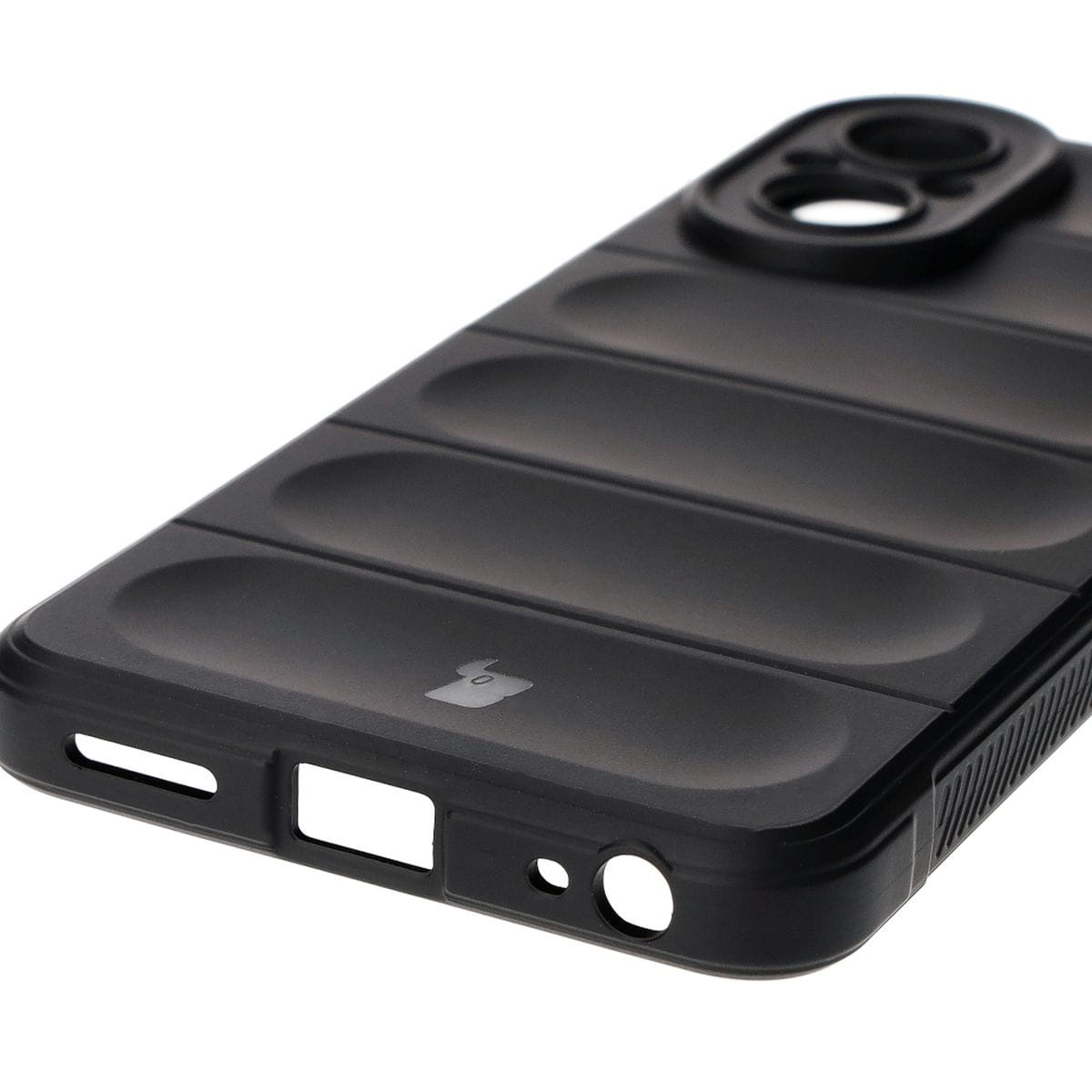 Etui marki Bizon Case z serii Tur to wysoka ochrona dla Twojego telefonu. Pokrowiec wykonany został z termoplastycznego poliuretanu. Wzmocnione narożniki, wyżłobiona struktura oraz wnętrze wyścielone mikrofibrą zapewnią bezpieczeństwo i wygodę użytkowania telefonu. Case częściowo zasłania wyspę aparatów, co stanowi dodatkową osłonę tylnego panelu. Dodatkowe wyróżnienie stanowi logo w kształcie głowy bizona.