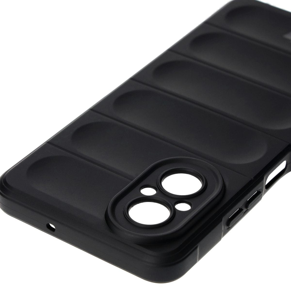 Design etui nie tylko ciekawie wygląda — wyżłobienia pełnią funkcję niewidzialnych poduszek powietrznych! Tur bez mocnych rogów nie byłby turem, więc takie samo rozwiązanie zastosowano również w rogach futerału.