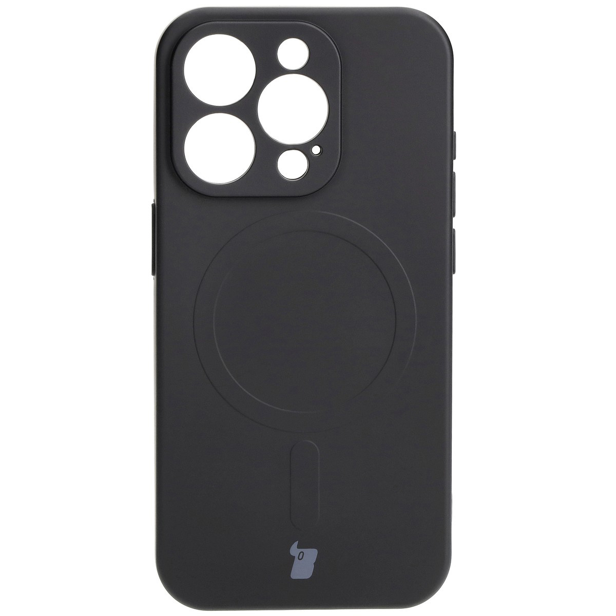Etui silikonowe z pierścieniem magnetycznym Bizon Case Silicone Magnetic do iPhone 15 Pro, czarne