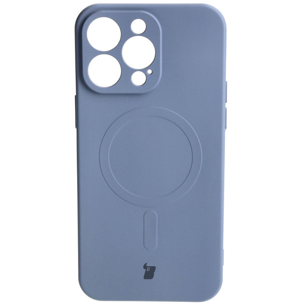 Etui silikonowe z pierścieniem magnetycznym Bizon Case Silicone Magnetic do iPhone 15 Pro Max, szare