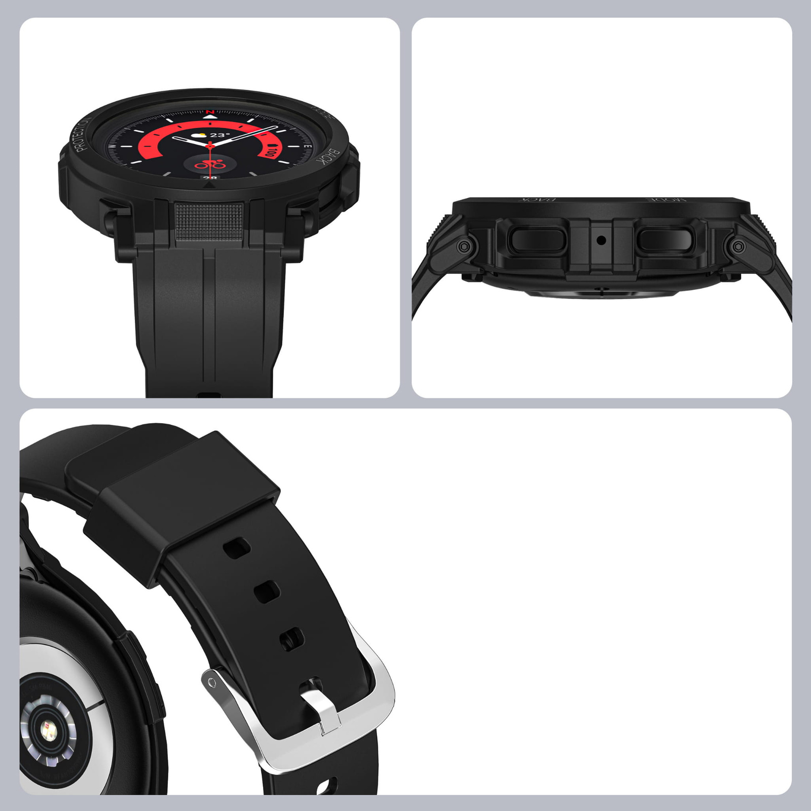 - Etui z paskiem Bizon Strap + Case Watch Action Pro do Samsung Galaxy Watch 5 Pro 45mm, czarne