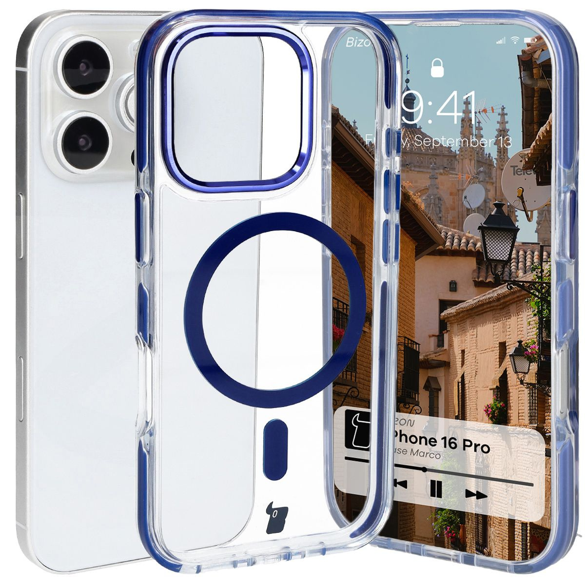 - Matowe etui, obudowa z pierścieniem magnetycznym, mocny case - nieważne, jak na to mówisz, ważne, że udało Ci się znaleźć przezroczyste etui z niebieską ramką Bizon Case Marco do Apple iPhone 16 Pro!