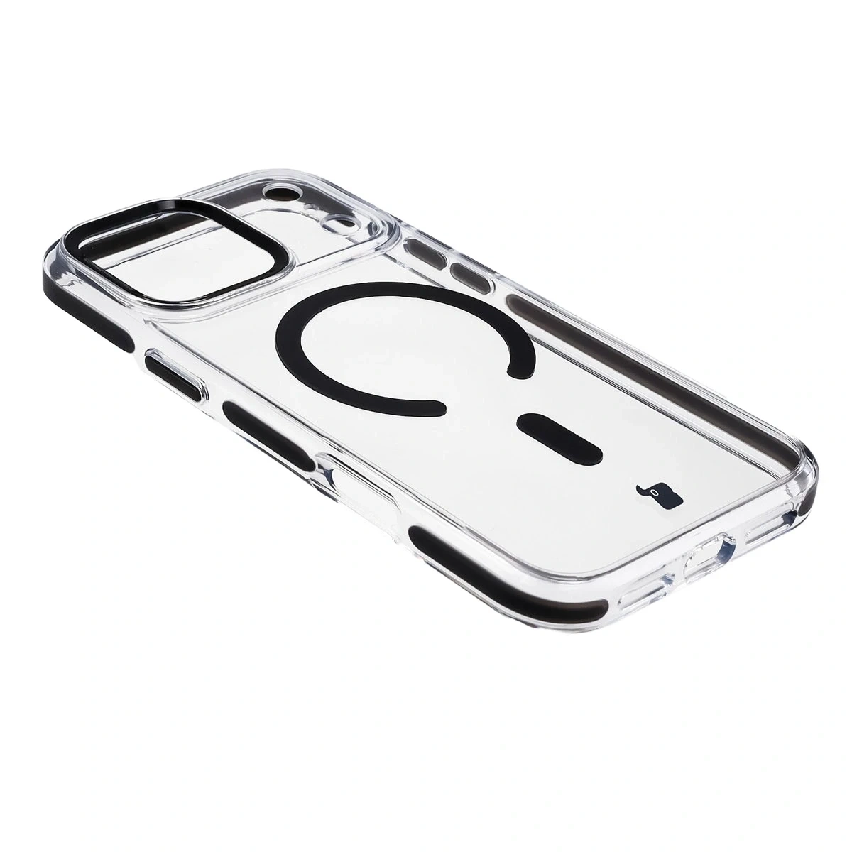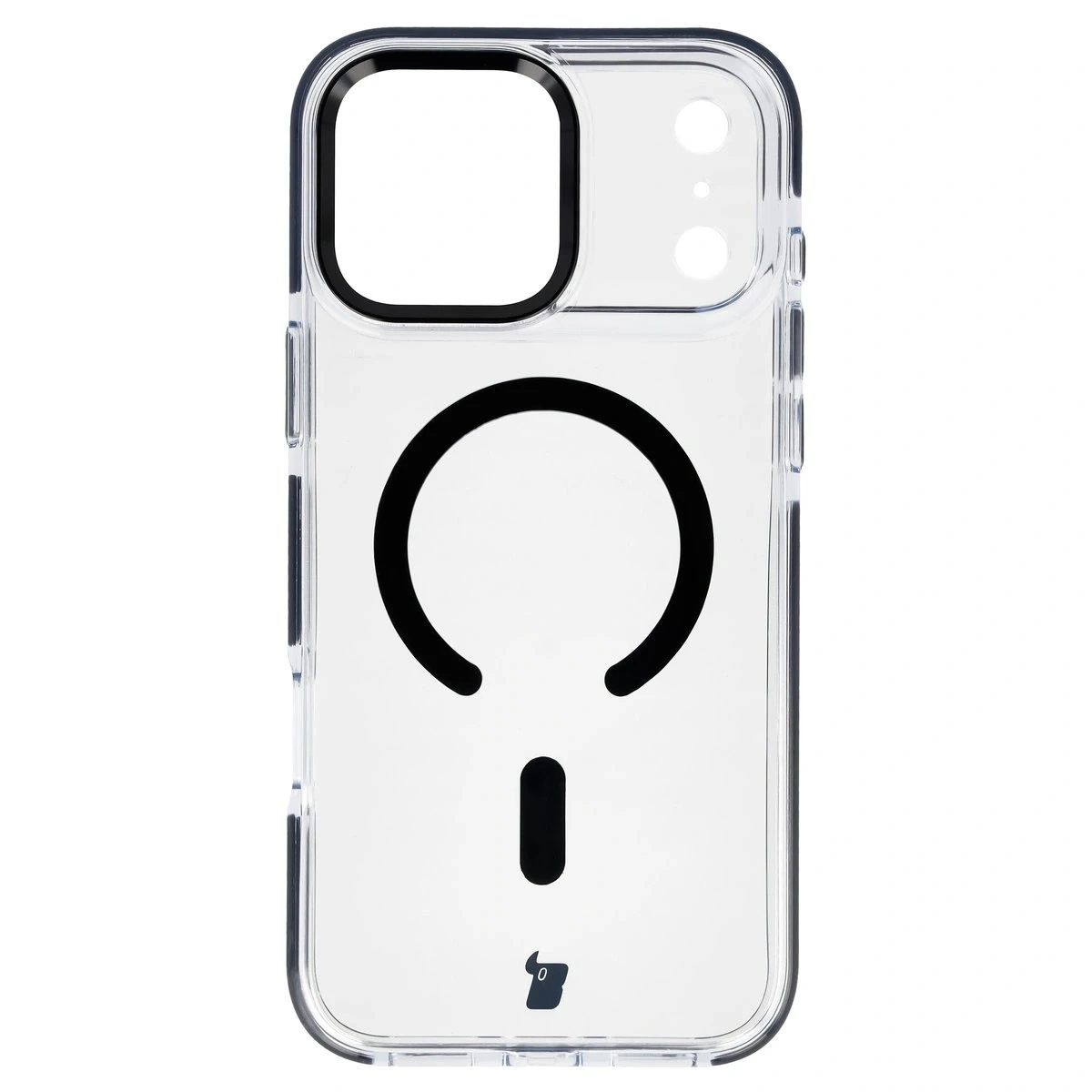 Etui z pierścieniem magnetycznym Bizon Case Marco do iPhone 17 Pro Max, przezroczyste z czarną ramką