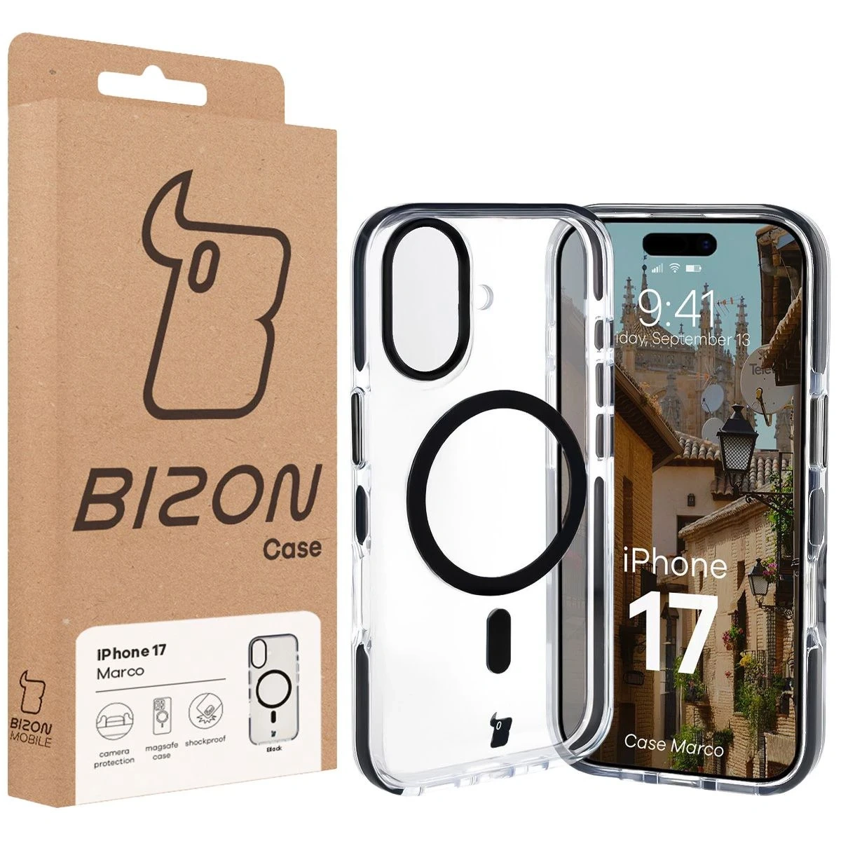 - Matowe etui, obudowa z pierścieniem magnetycznym, mocny case - nieważne, jak na to mówisz, ważne, że udało Ci się znaleźć przezroczyste etui z czarną ramką Bizon Case Marco do Apple iPhone 17!
