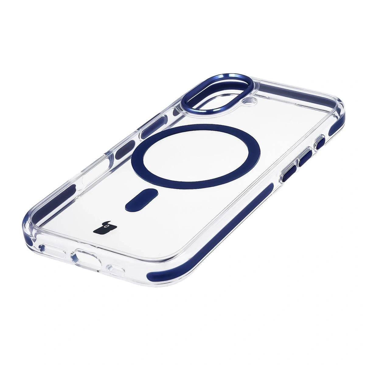 Etui z pierścieniem magnetycznym Bizon Case Marco do iPhone 17, przezroczyste z niebieską ramką