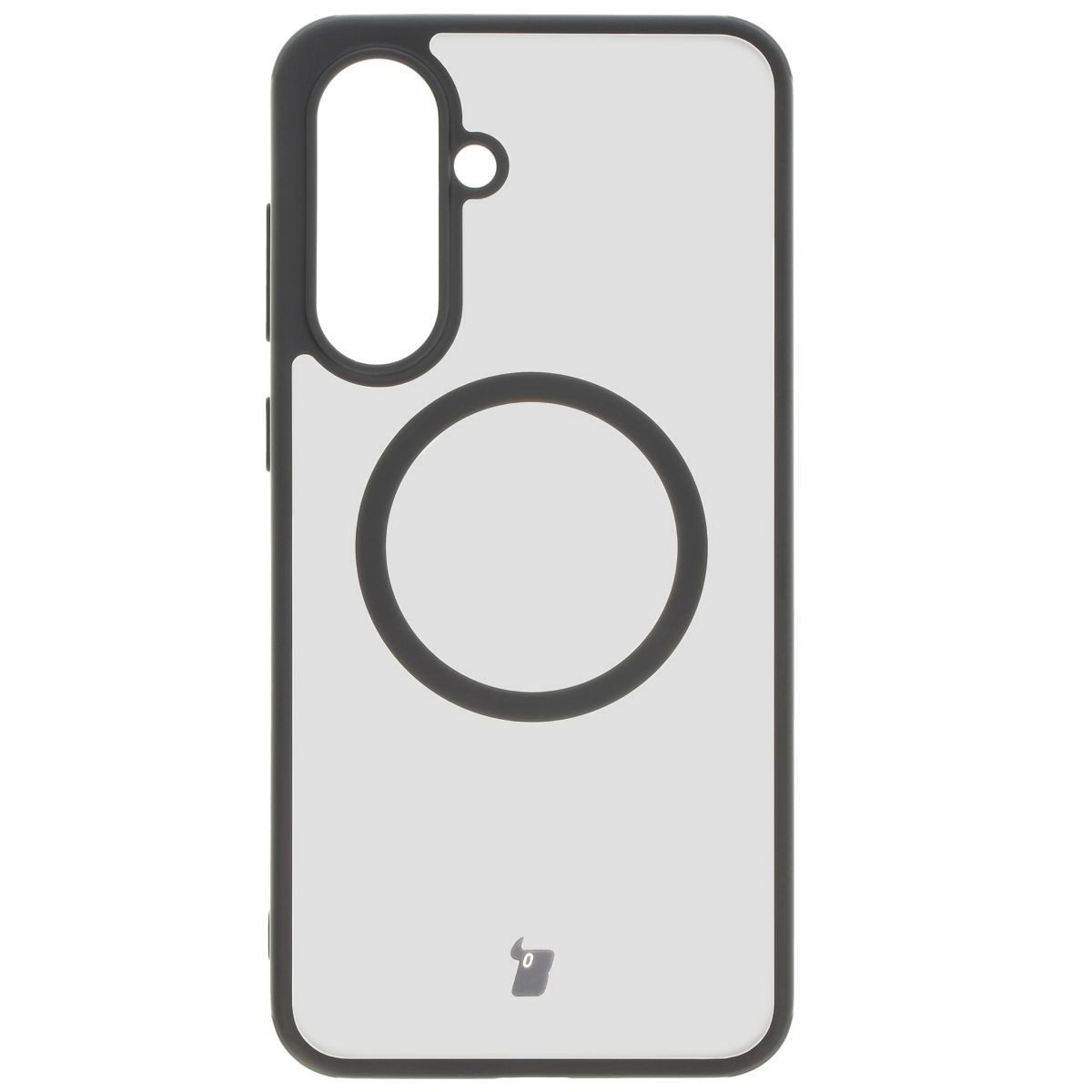 Etui z pierścieniem magnetycznym Bizon Case MatteO do Galaxy A36 5G, półprzezroczyste z czarną ramką