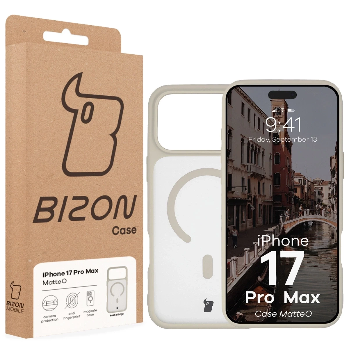 - Matowe etui, obudowa z pierścieniem magnetycznym - nieważne, jak na to mówisz, ważne, że udało Ci się znaleźć przydymione etui z beżową ramką Bizon Case MatteO do Apple iPhone 17 Pro Max!