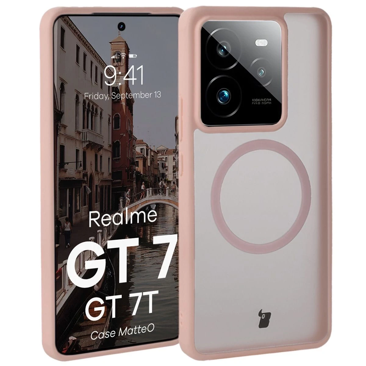 - Matowe etui, obudowa z pierścieniem magnetycznym - nieważne, jak na to mówisz, ważne, że udało Ci się znaleźć przydymione etui z różową ramką Bizon Case MatteO do Realme GT 7 / Realme GT 7T!