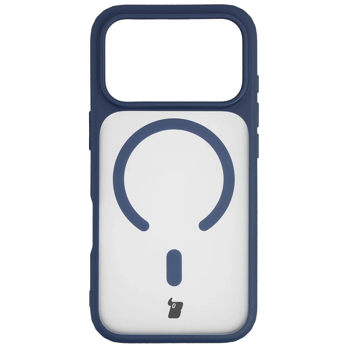 Etui z pierścieniem magnetycznym + szkło hartowane Bizon MatteO Pack do iPhone 17 Pro, przydymione-granatowe