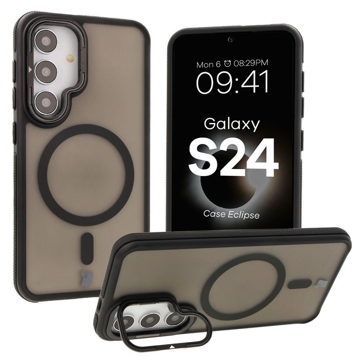 Etui z podstawką i pierścieniem magnetycznym Bizon Case Eclipse do Galaxy S24, przydymione z czarną ramką