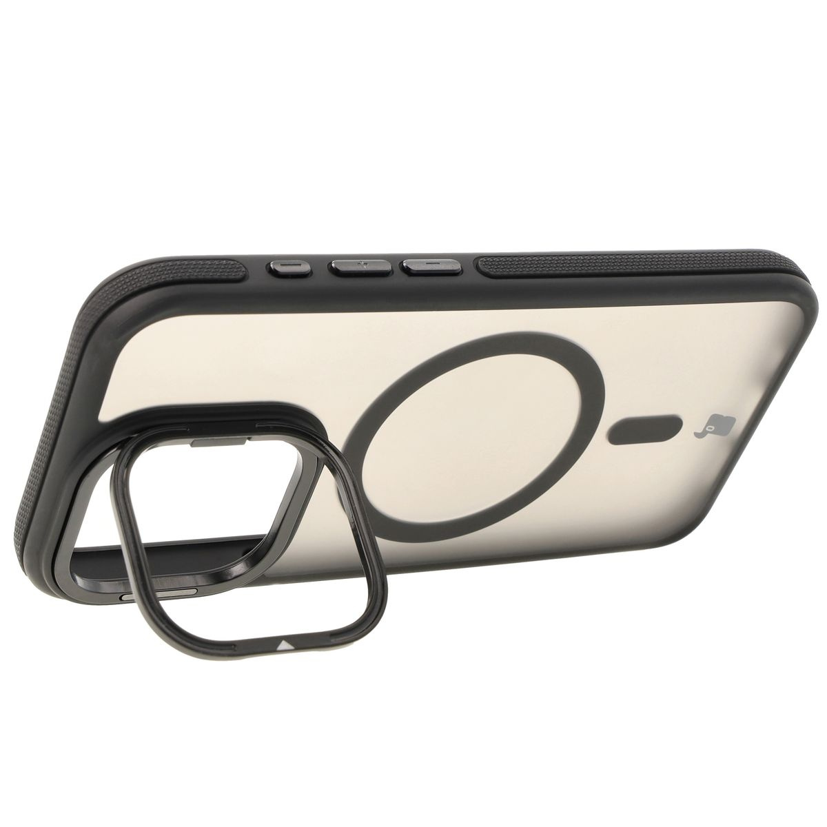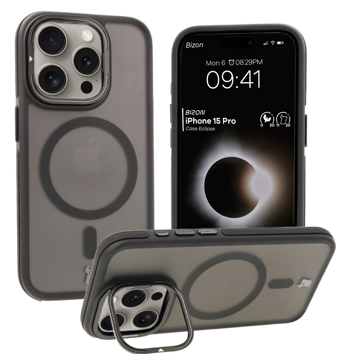 Etui z podstawką i pierścieniem magnetycznym Bizon Case Eclipse do iPhone 15 Pro, przydymione z czarną ramką