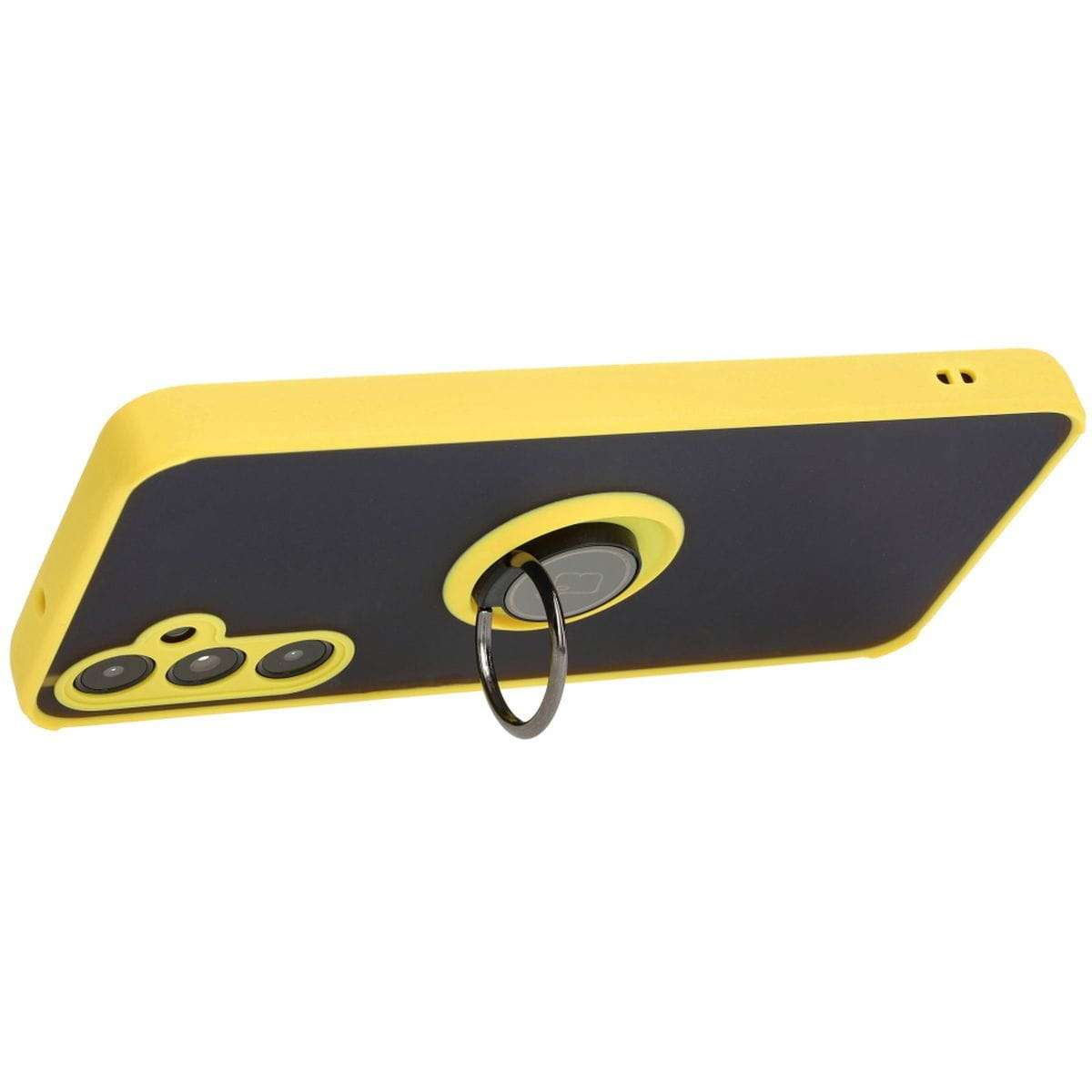 Etui z uchwytem na palec Bizon Case Hybrid Ring do Galaxy A05s, przydymione z żółtą ramką
