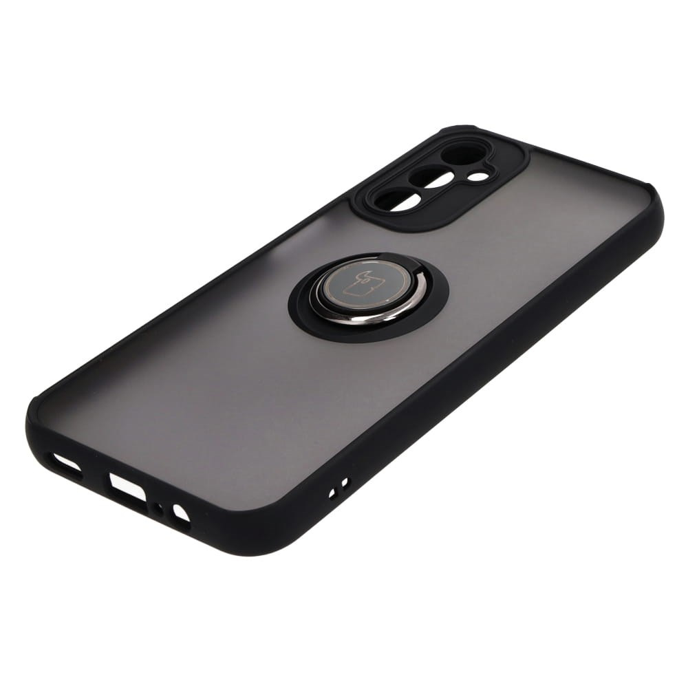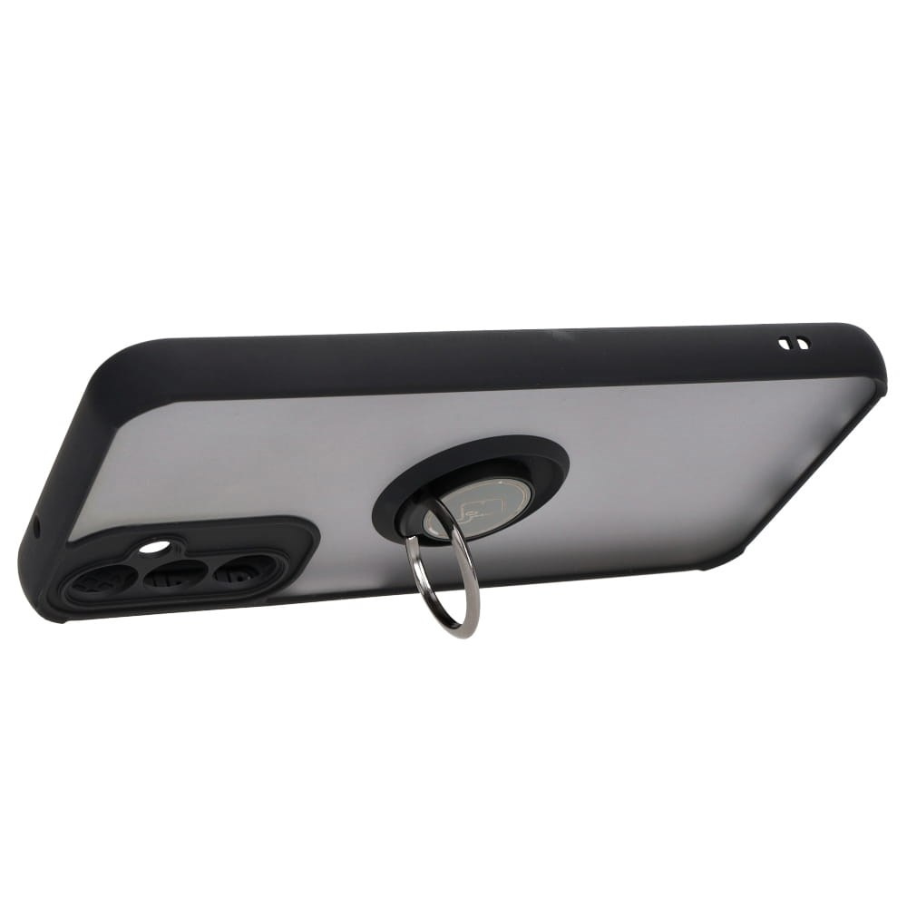 Etui z uchwytem na palec Bizon Case Hybrid Ring do Galaxy A14 4G / 5G, przydymione z czarną ramką