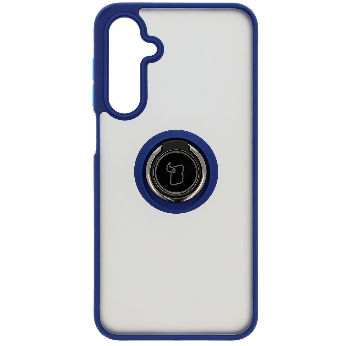 Etui z uchwytem na palec Bizon Case Hybrid Ring do Galaxy A16 4G/5G, przydymione z granatową ramką