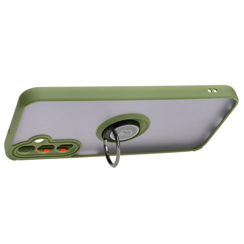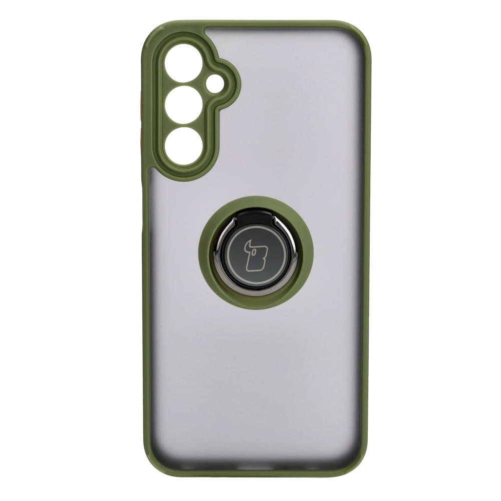 Etui z uchwytem na palec Bizon Case Hybrid Ring do Galaxy A24 4G, przydymione z zieloną ramką