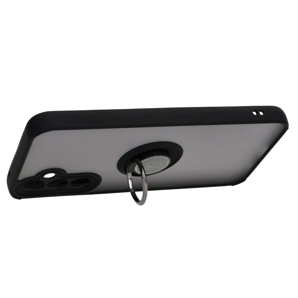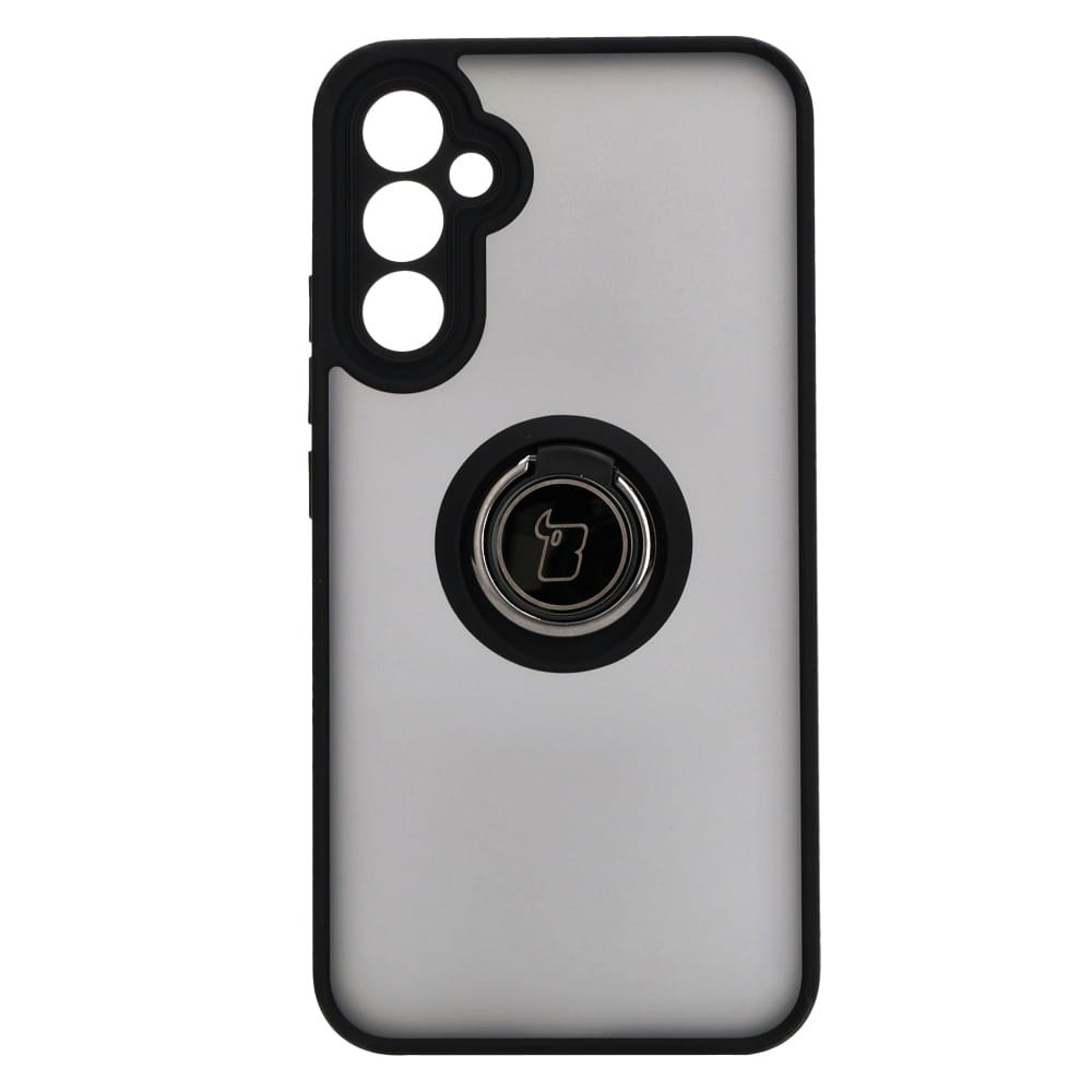 Etui z uchwytem na palec Bizon Case Hybrid Ring do Galaxy A34 5G, przydymione z czarną ramką