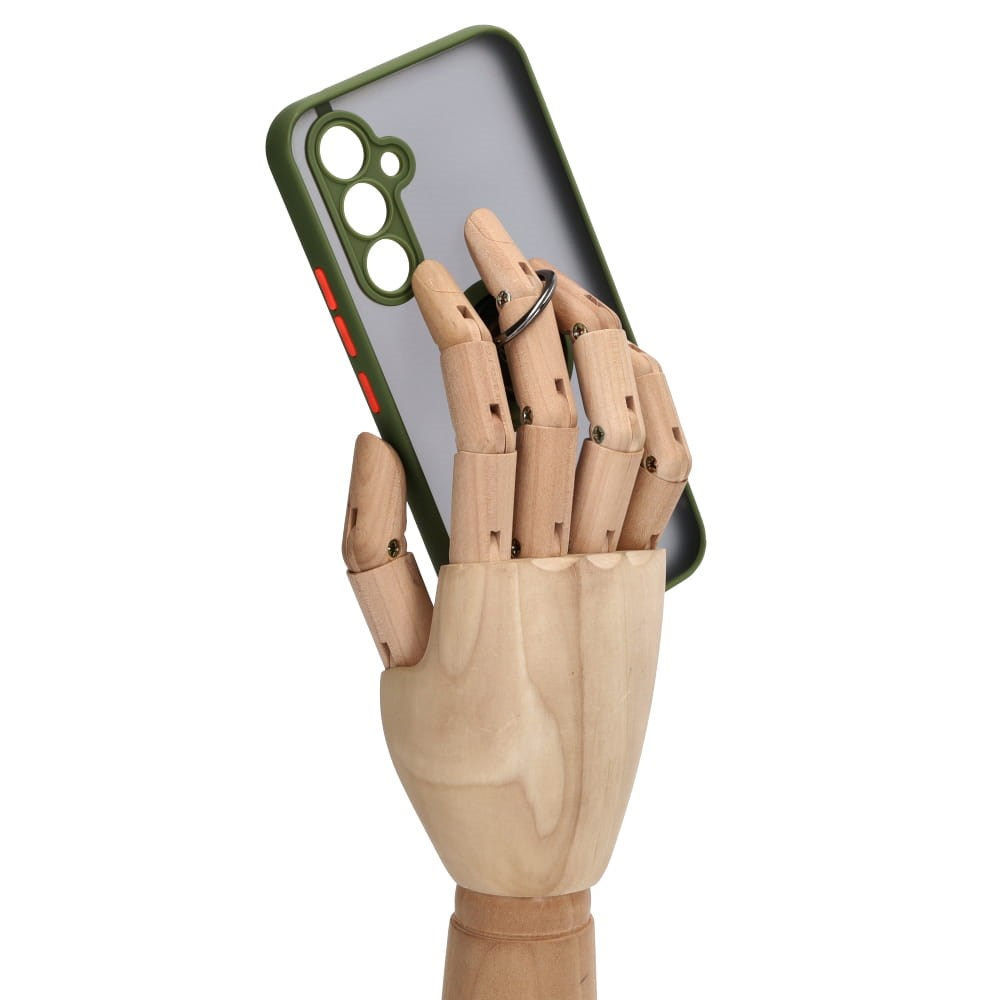 Etui z uchwytem na palec Bizon Case Hybrid Ring do Galaxy A54 5G, przydymione z zieloną ramką