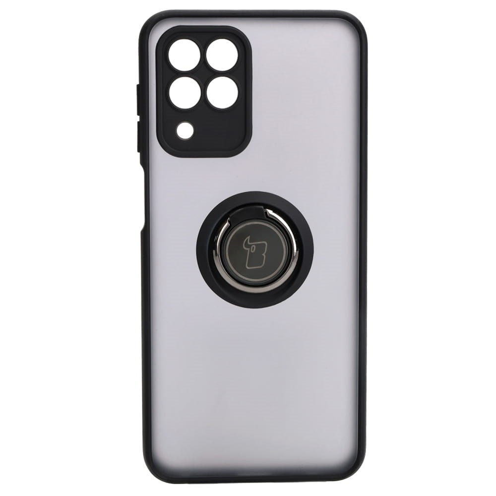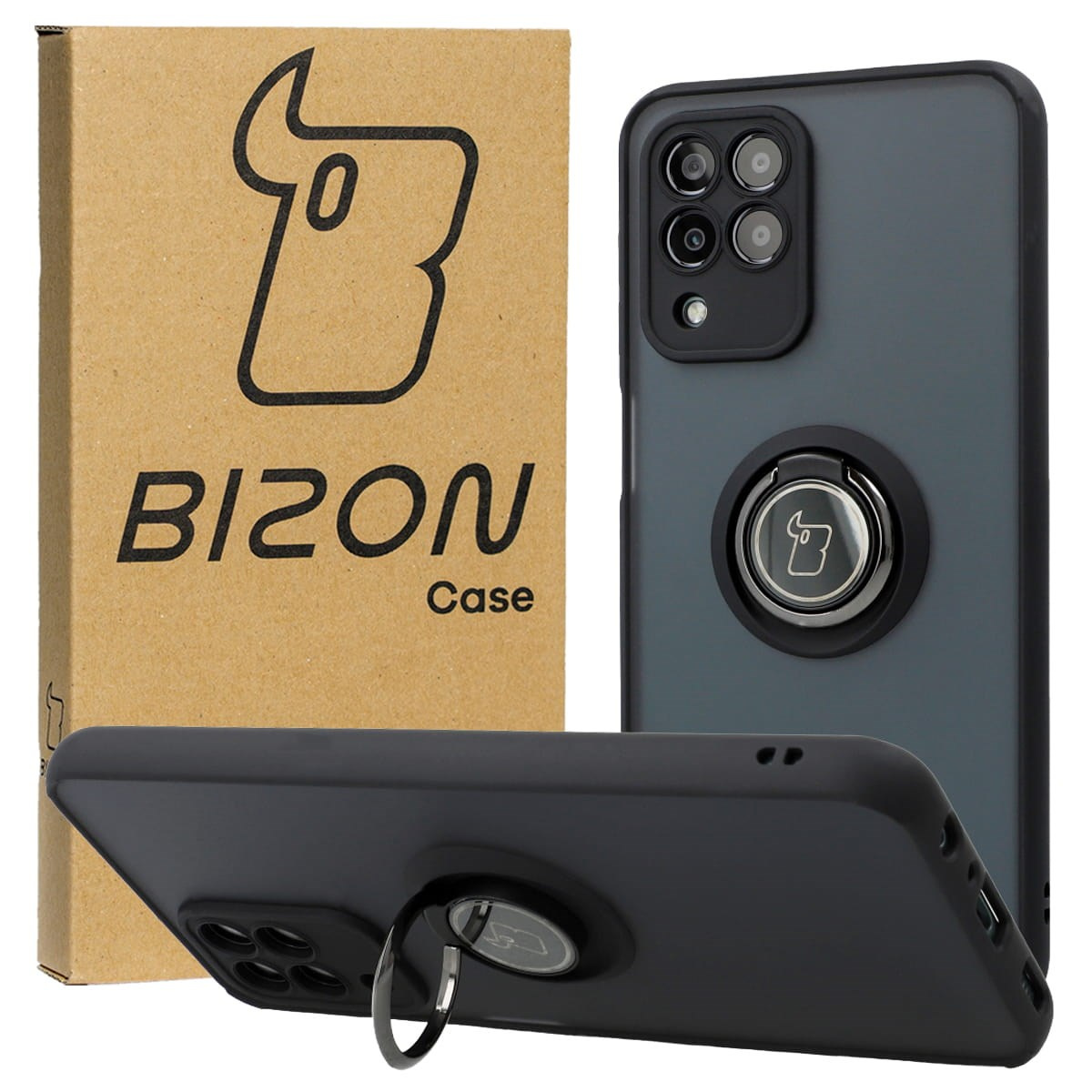 Etui z uchwytem na palec Bizon Case Hybrid Ring do Galaxy M33 5G, przydymione z czarną ramką