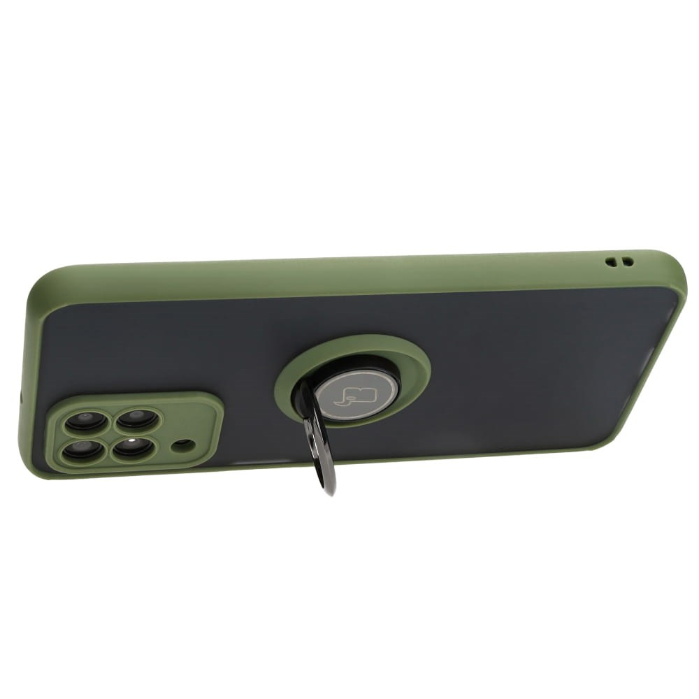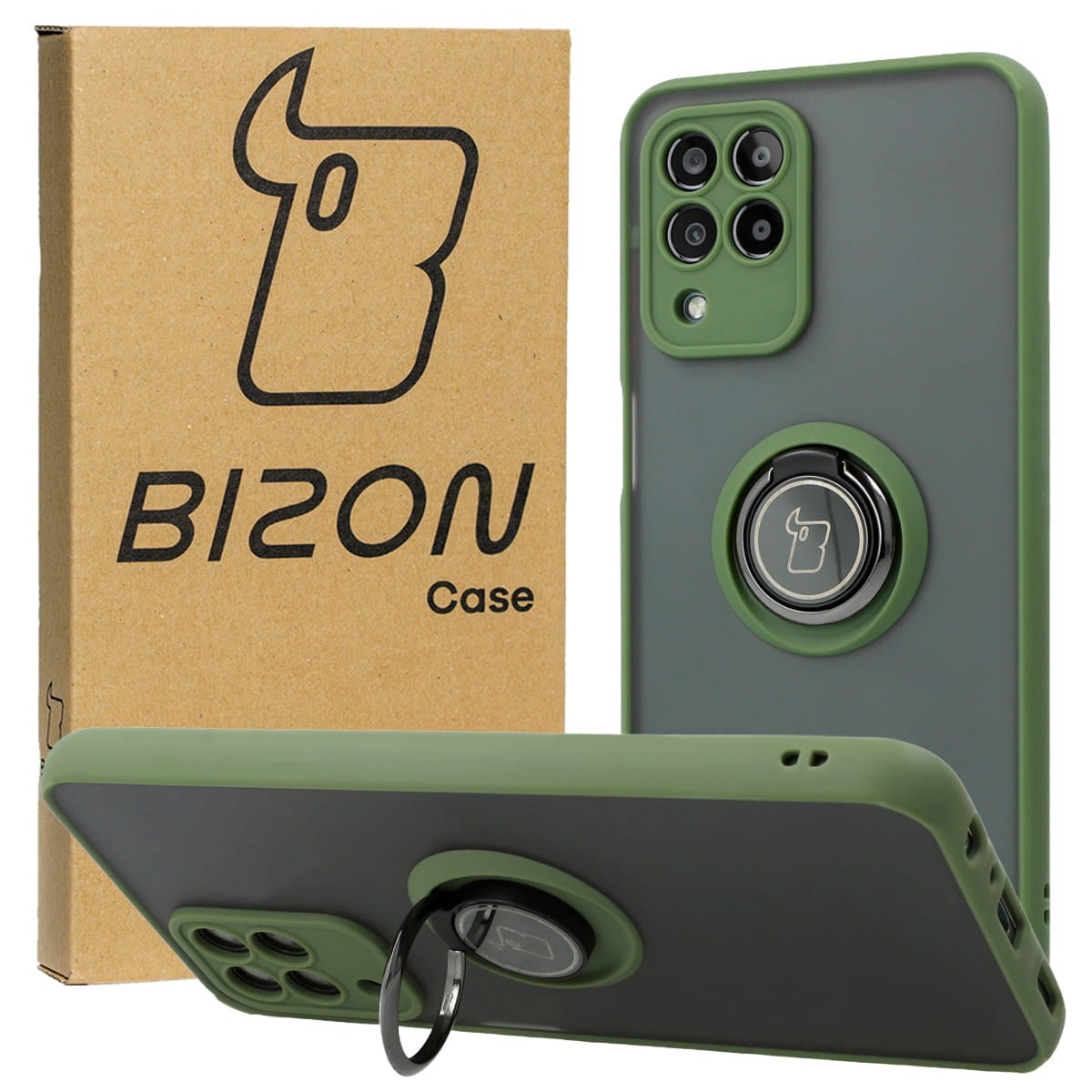 Etui z uchwytem na palec Bizon Case Hybrid Ring do Galaxy M33 5G, przydymione z zieloną ramką