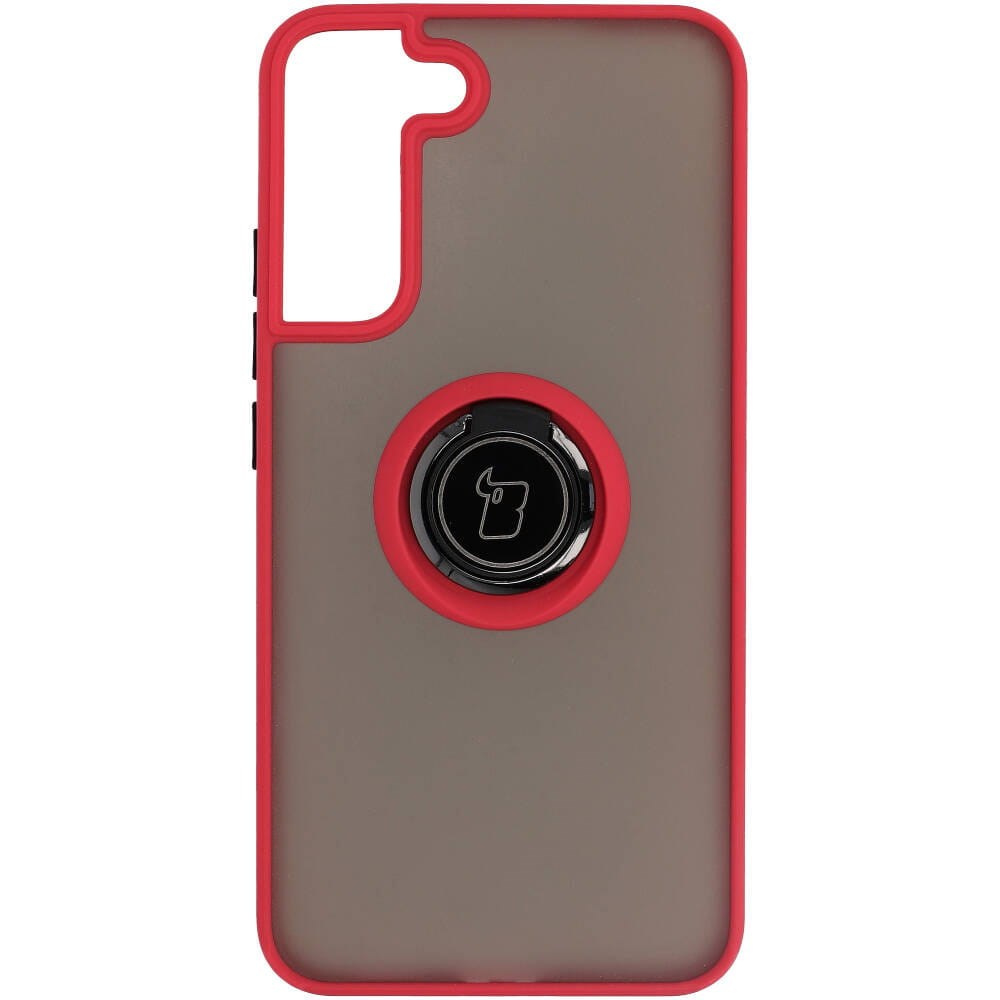 Etui z uchwytem na palec Bizon Case Hybrid Ring do Galaxy S22 Plus, przydymione z czerwoną ramką