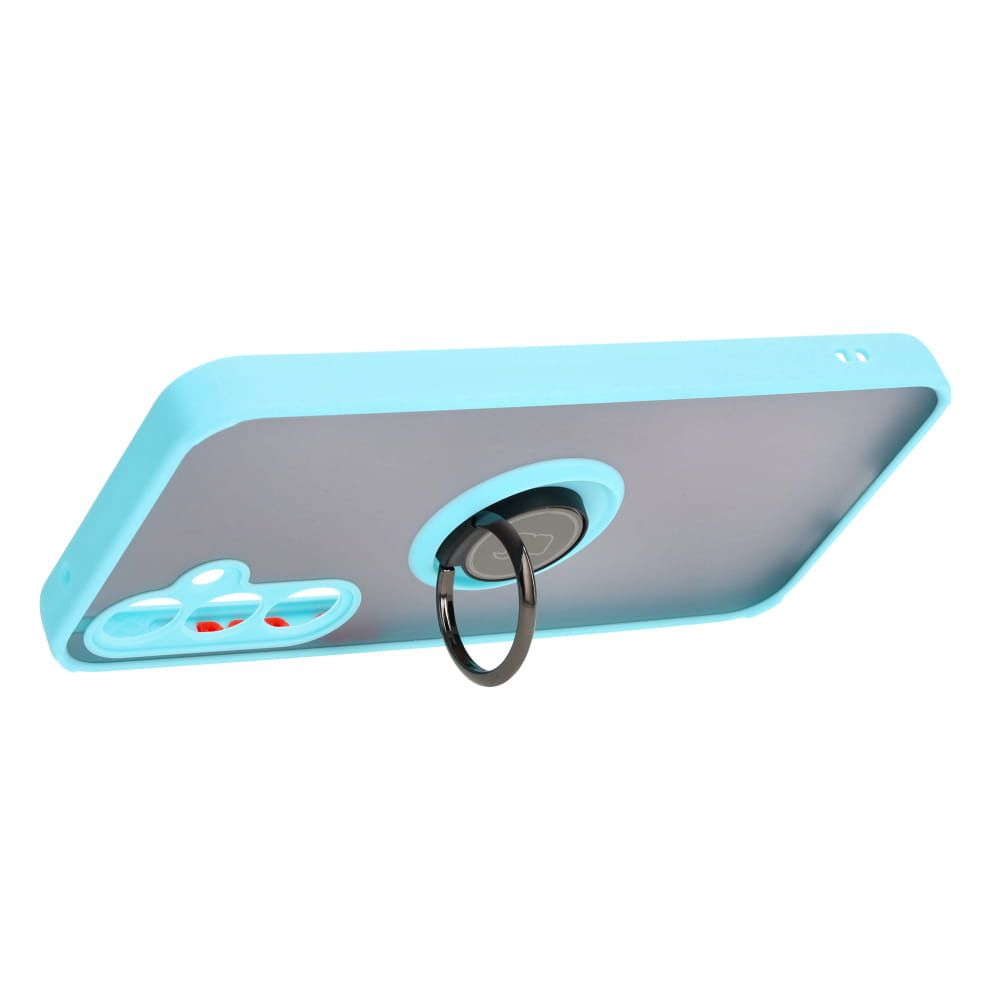 Etui z uchwytem na palec Bizon Case Hybrid Ring do Galaxy S23 FE, przydymione z jasnoniebieską ramką