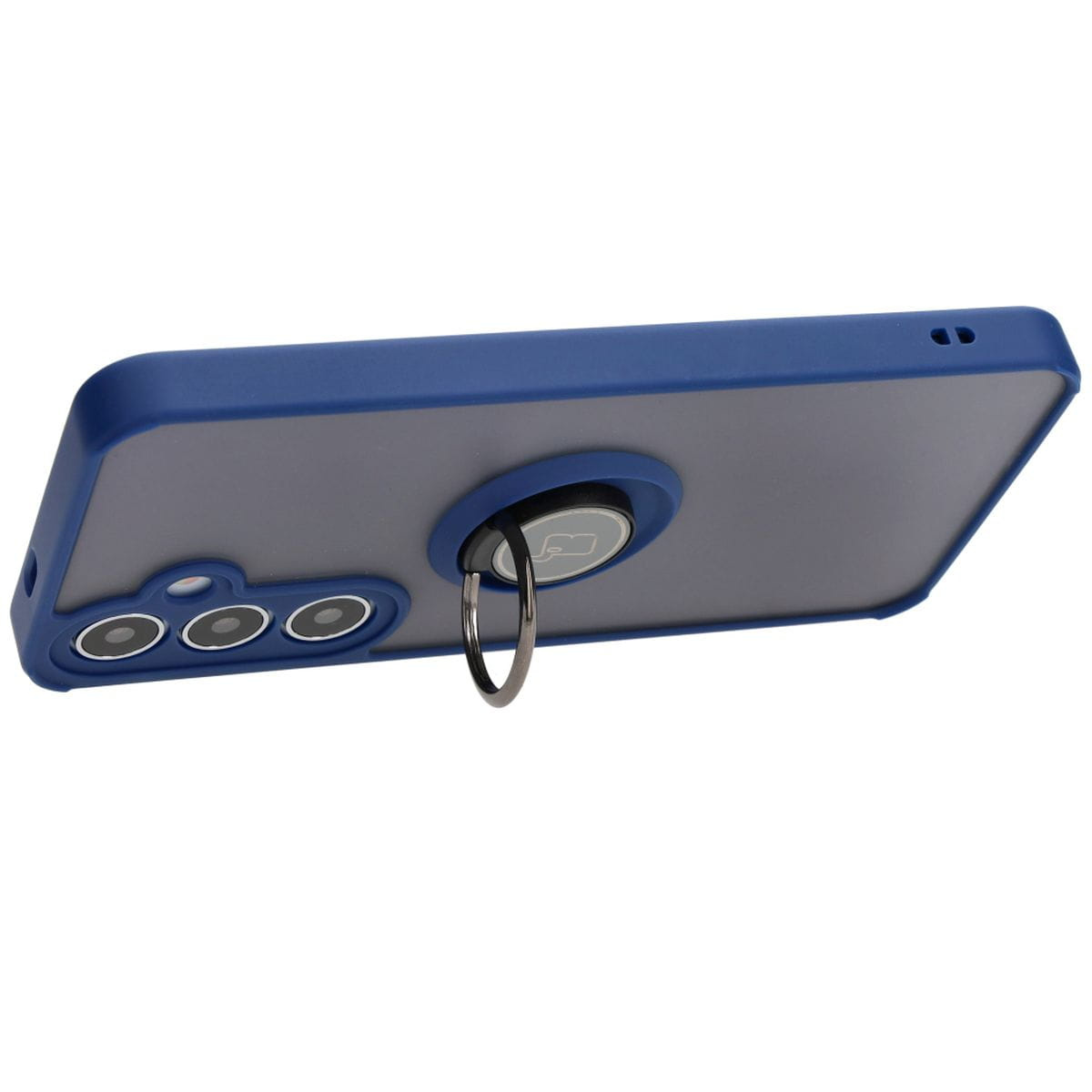 Etui z uchwytem na palec Bizon Case Hybrid Ring do Galaxy S25 Plus / S24 Plus, przydymione z granatową ramką