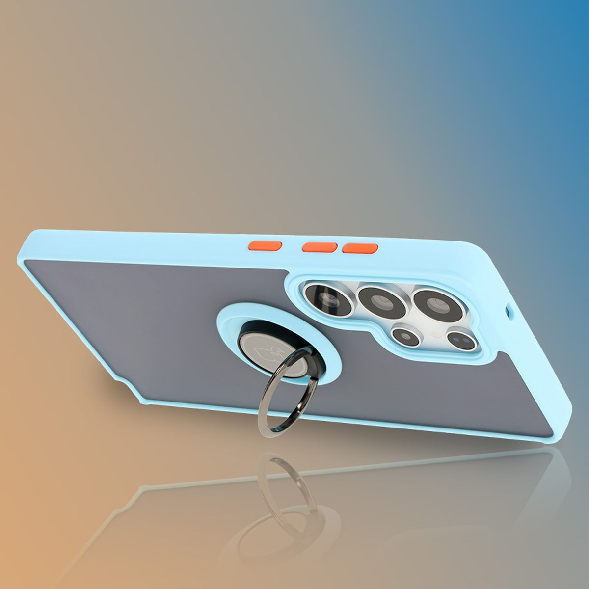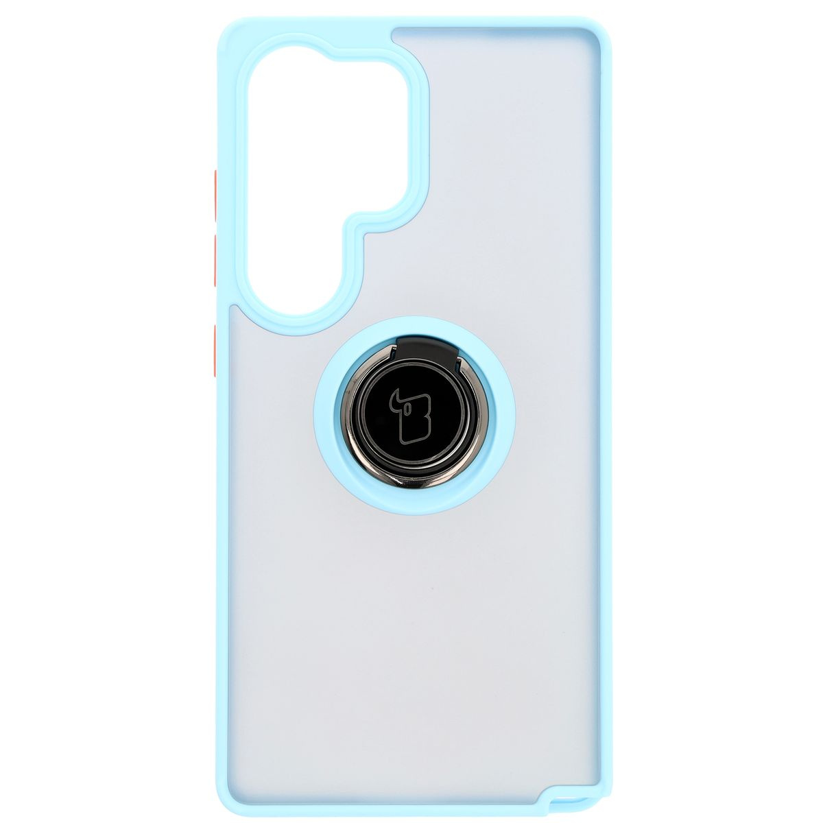 Etui z uchwytem na palec Bizon Case Hybrid Ring do Galaxy S25 Ultra, przydymione z jasnoniebieską ramką