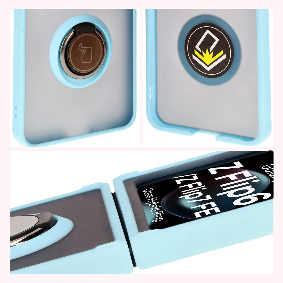 - Etui z uchwytem na palec, obudowa z ringiem, cover z podstawką, pokrowiec z funkcją podstawki - nieważne, jak na to mówisz, ważne, że udało Ci się znaleźć jasnoniebieskie etui Bizon Case Hybrid Ring do Samsung Galaxy Z Flip7 FE / Z Flip6!