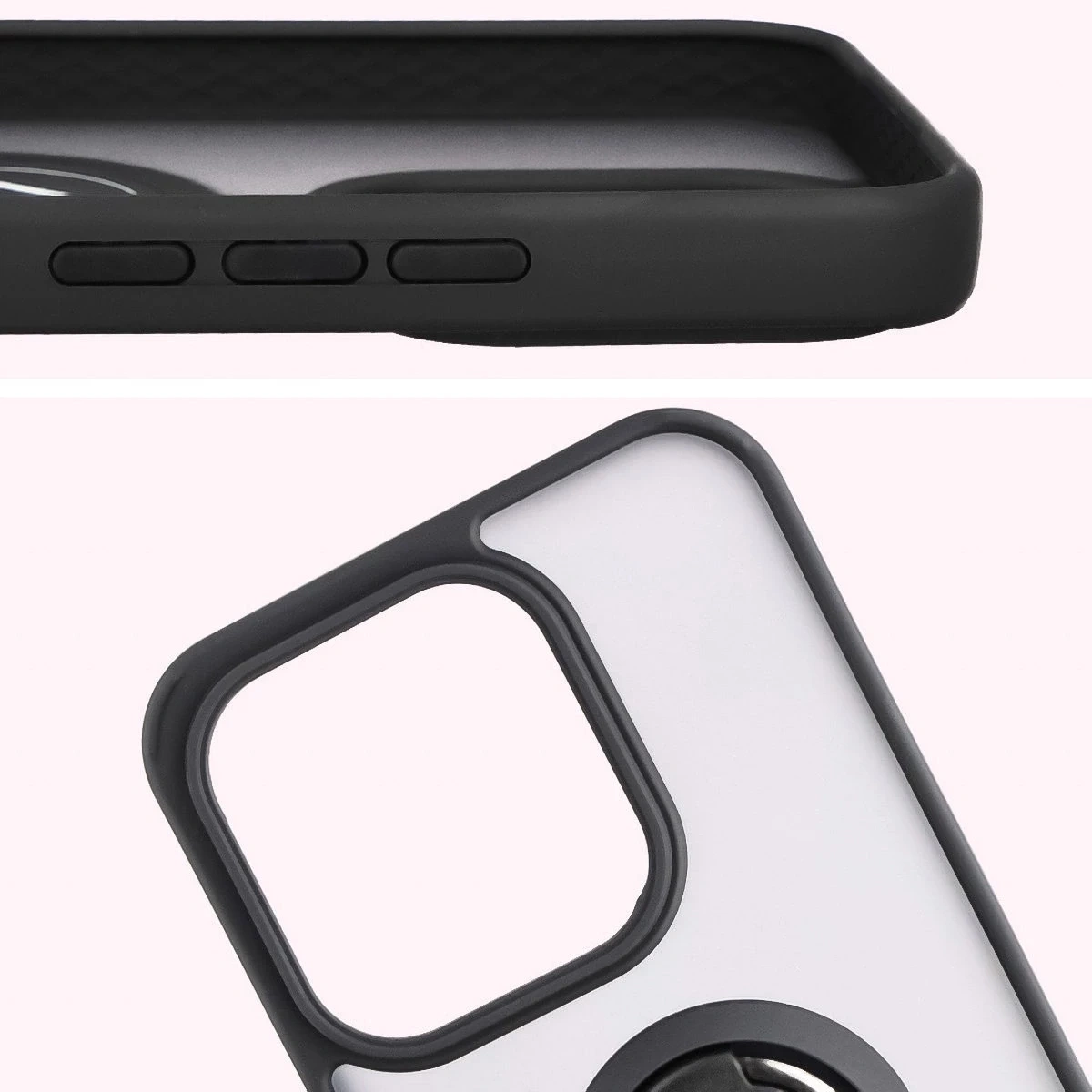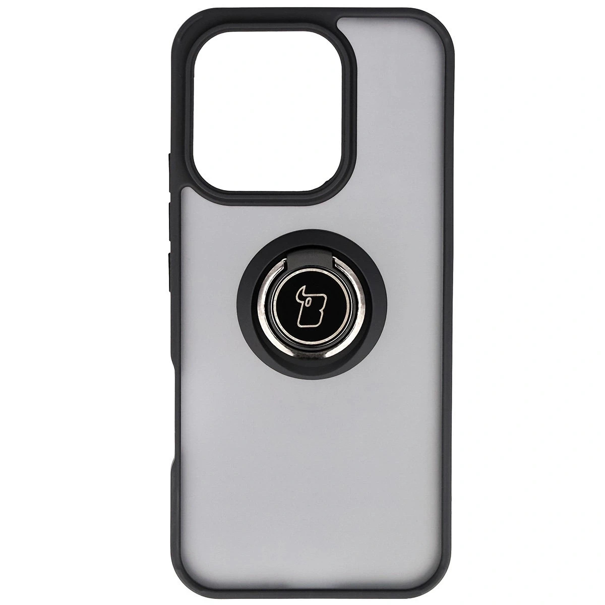 Etui z uchwytem na palec Bizon Case Hybrid Ring do Honor 400 Lite, przydymione z czarną ramką