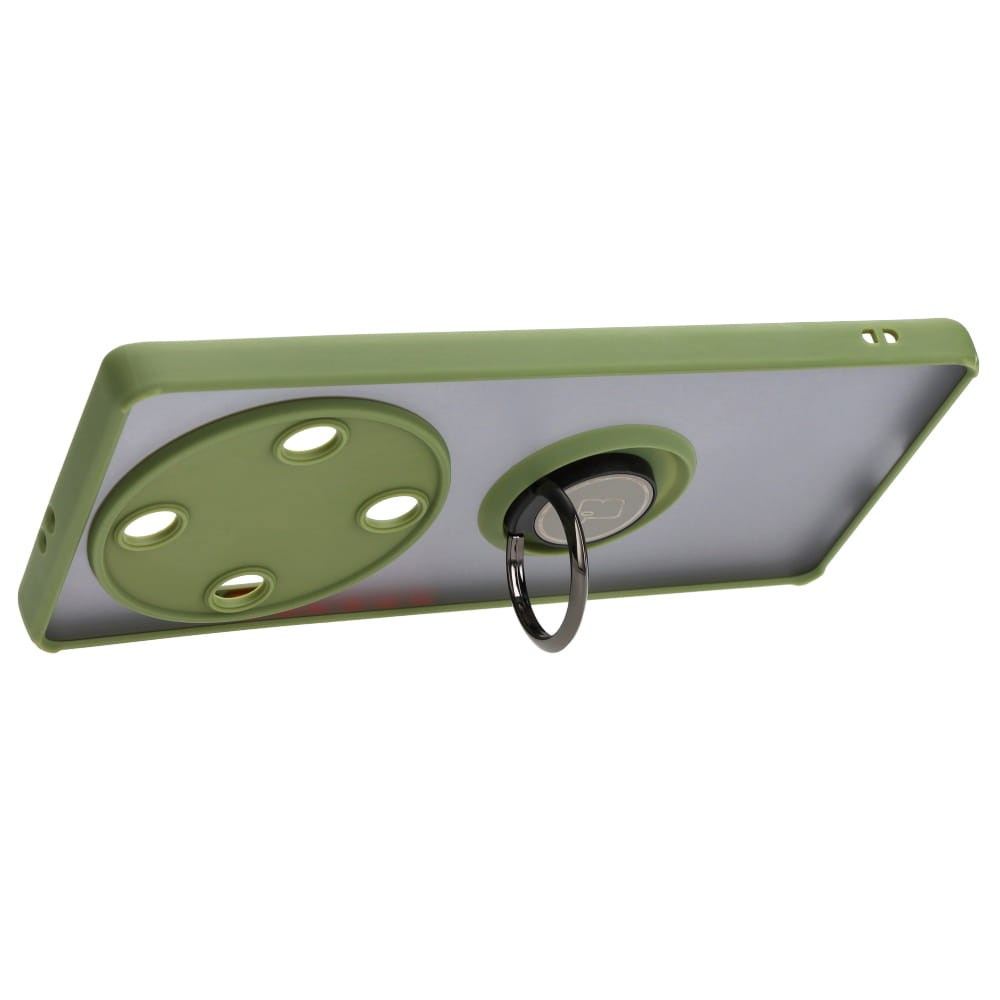 Etui z uchwytem na palec Bizon Case Hybrid Ring do Honor Magic5 Lite, przydymione z zieloną ramką