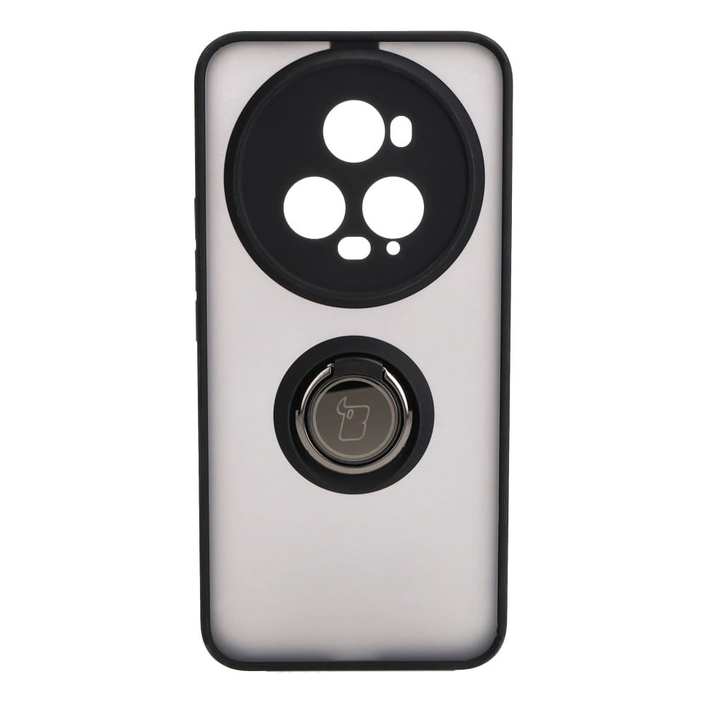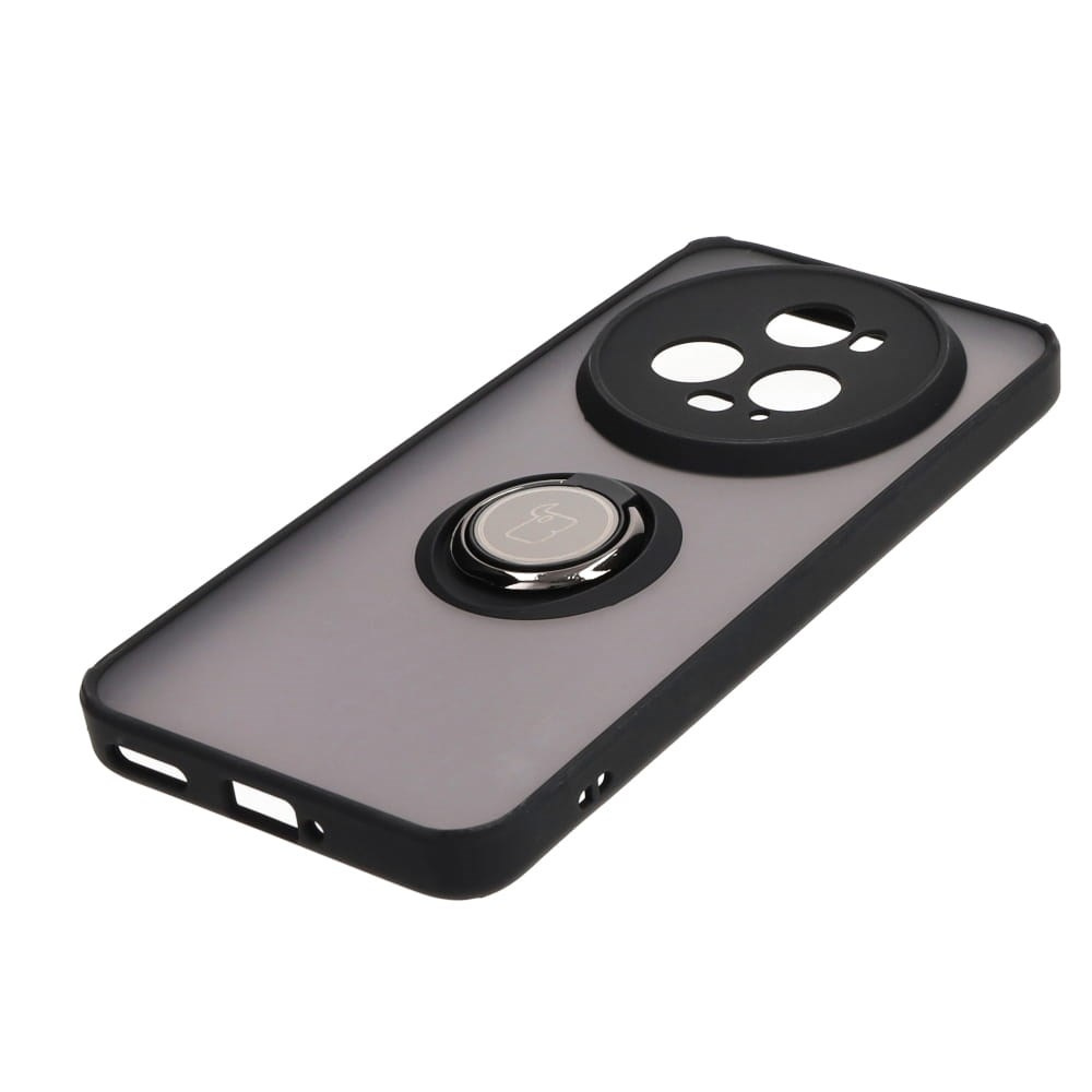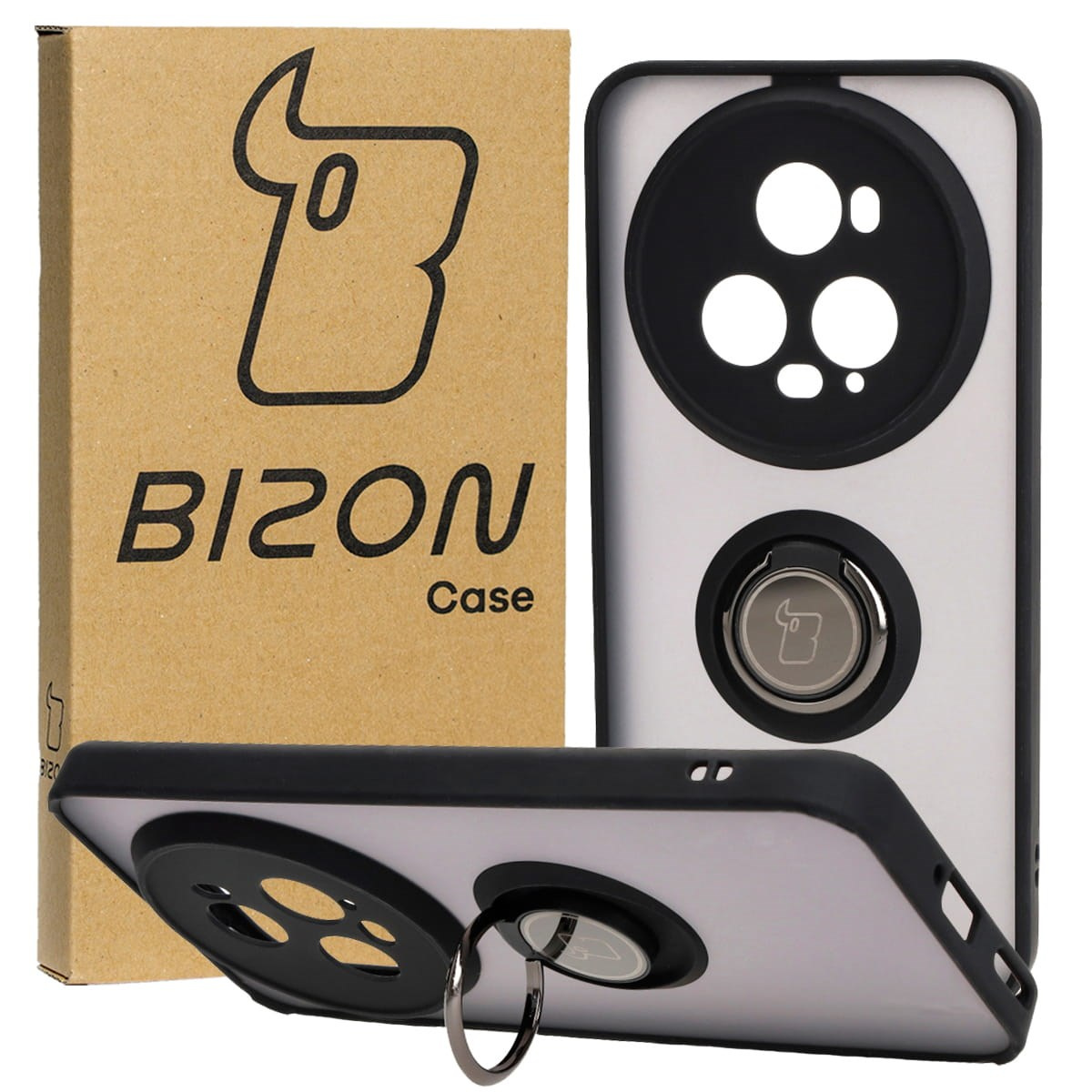 Etui z uchwytem na palec Bizon Case Hybrid Ring do Honor Magic5 Pro, przydymione z czarną ramką