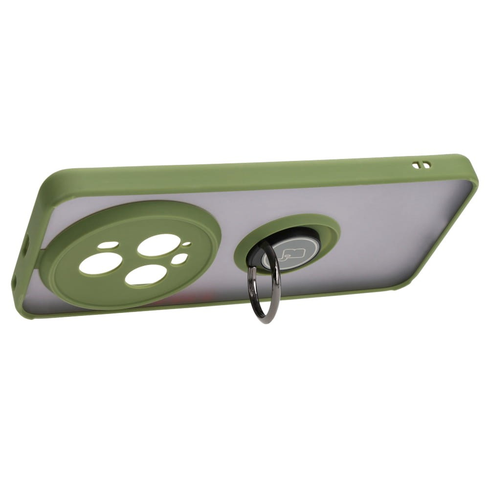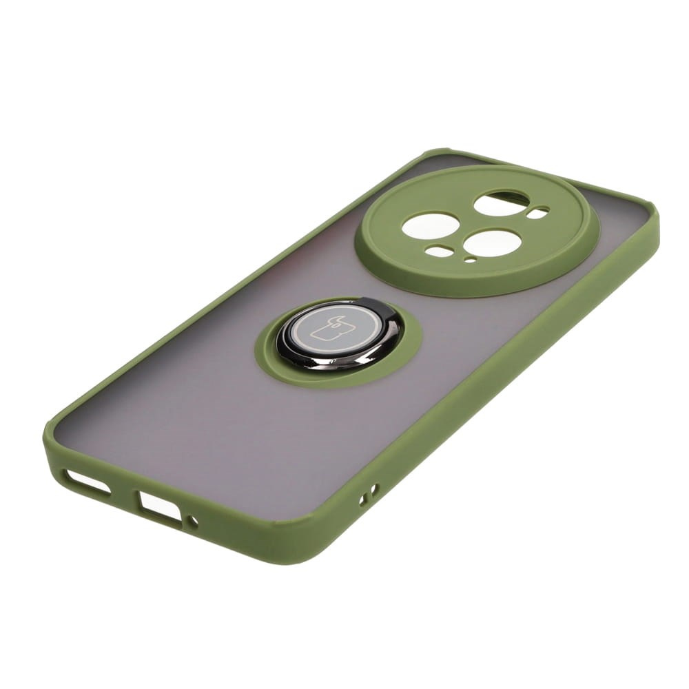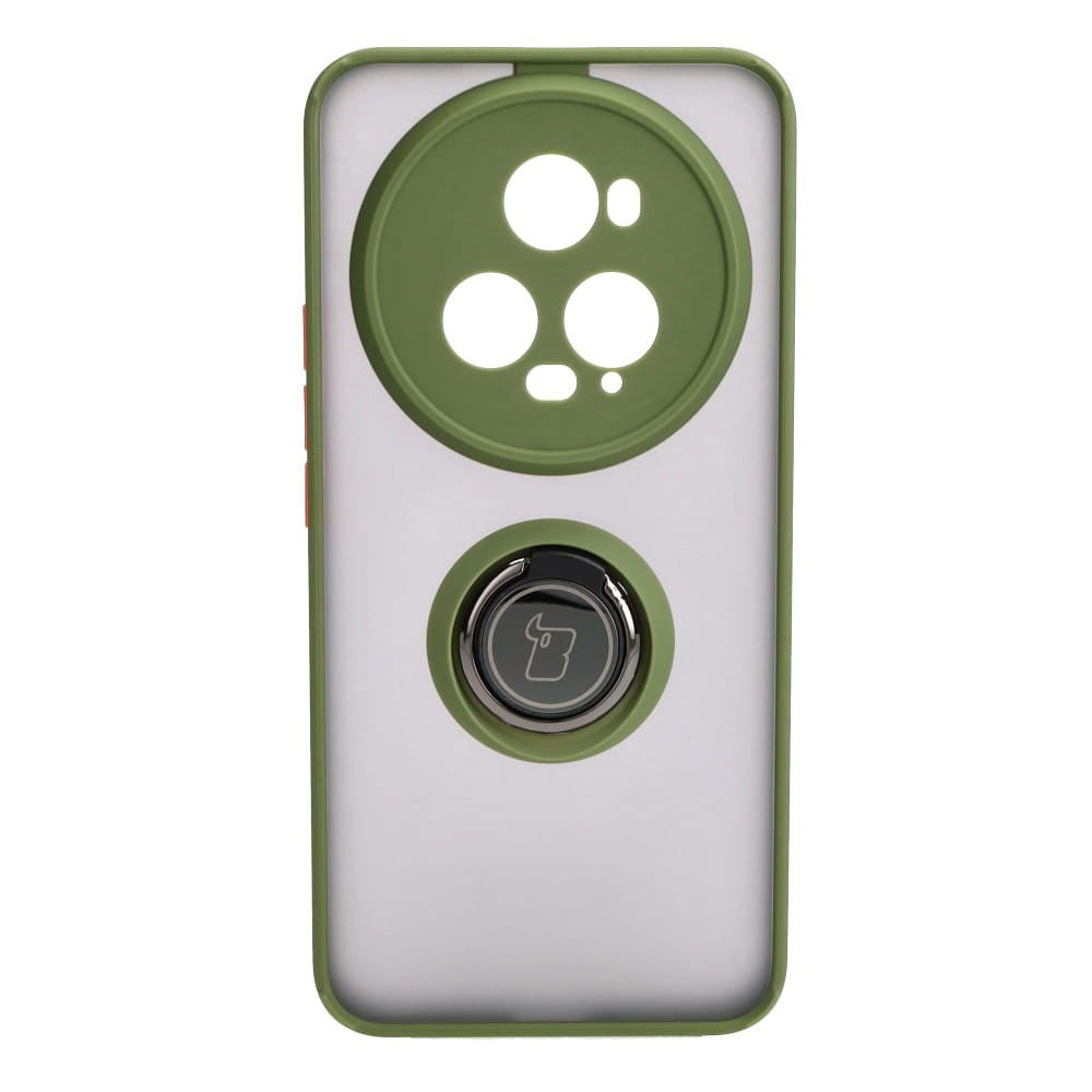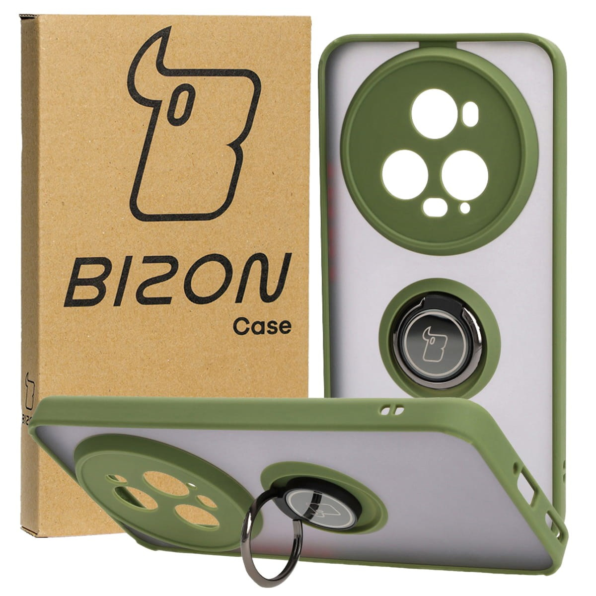 Etui z uchwytem na palec Bizon Case Hybrid Ring do Honor Magic5 Pro, przydymione z zieloną ramką