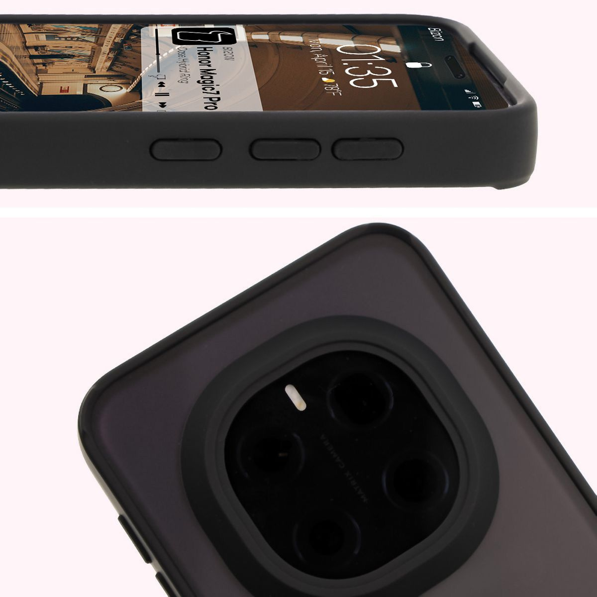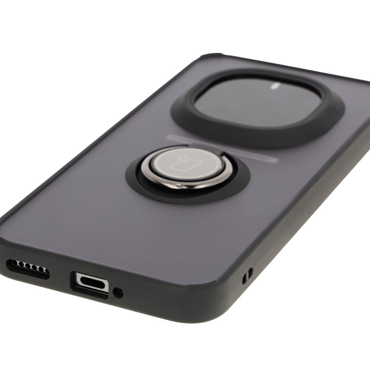 Etui z uchwytem na palec Bizon Case Hybrid Ring do Honor Magic7 Pro, przydymione z czarną ramką