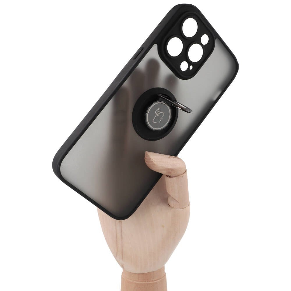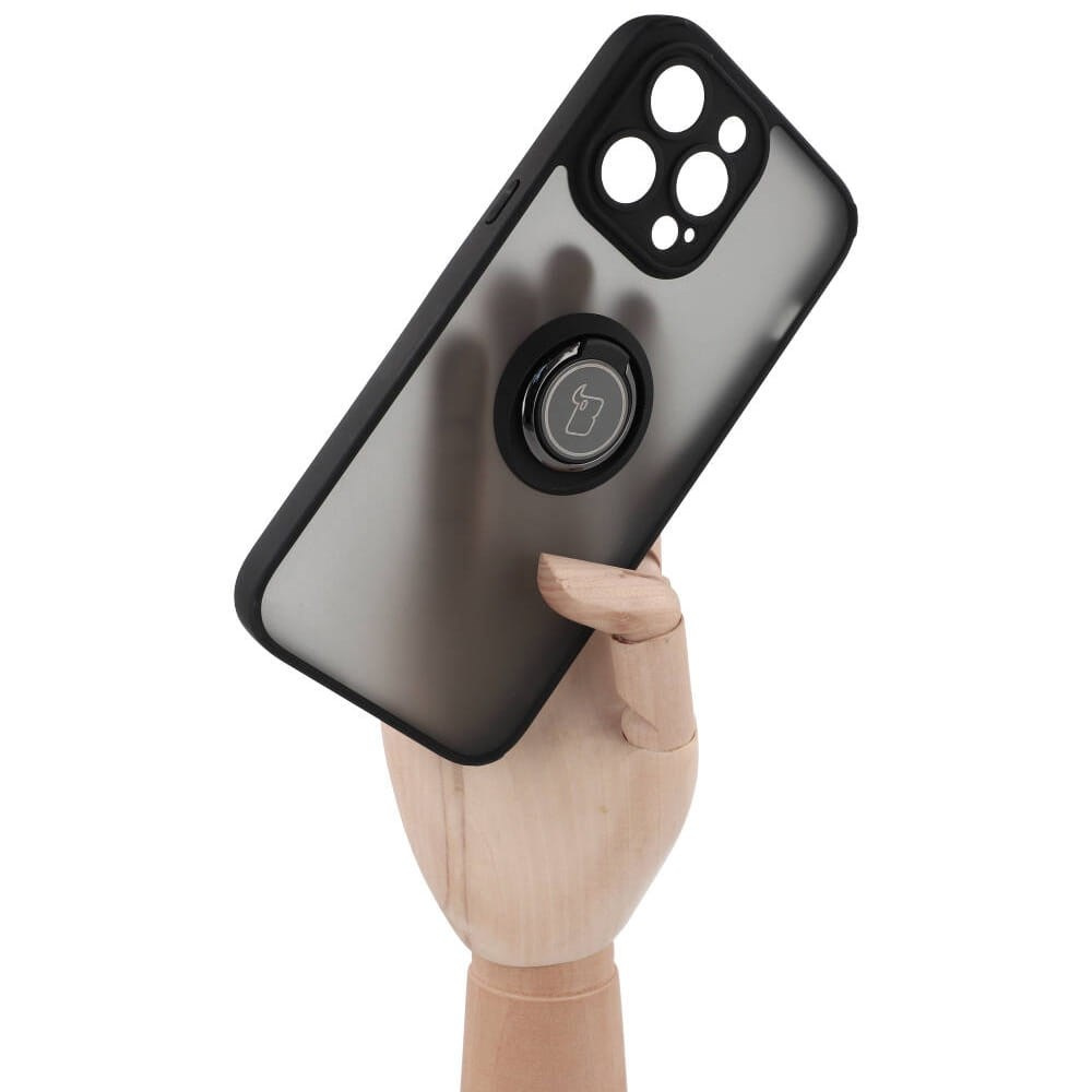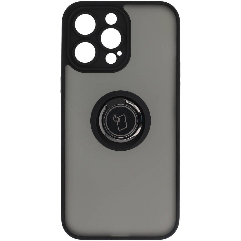 Etui z uchwytem na palec Bizon Case Hybrid Ring do iPhone 14 Pro Max, przydymione z czarną ramką