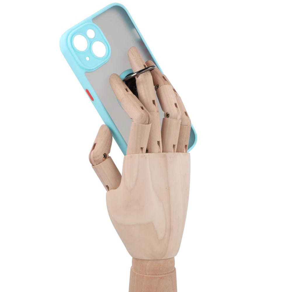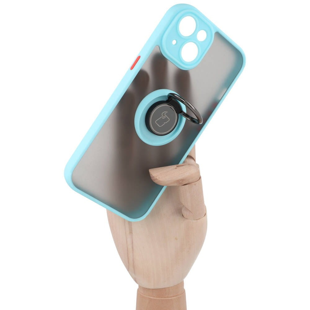 Etui z uchwytem na palec Bizon Case Hybrid Ring do iPhone 14, przydymione z jasnoniebieską ramką