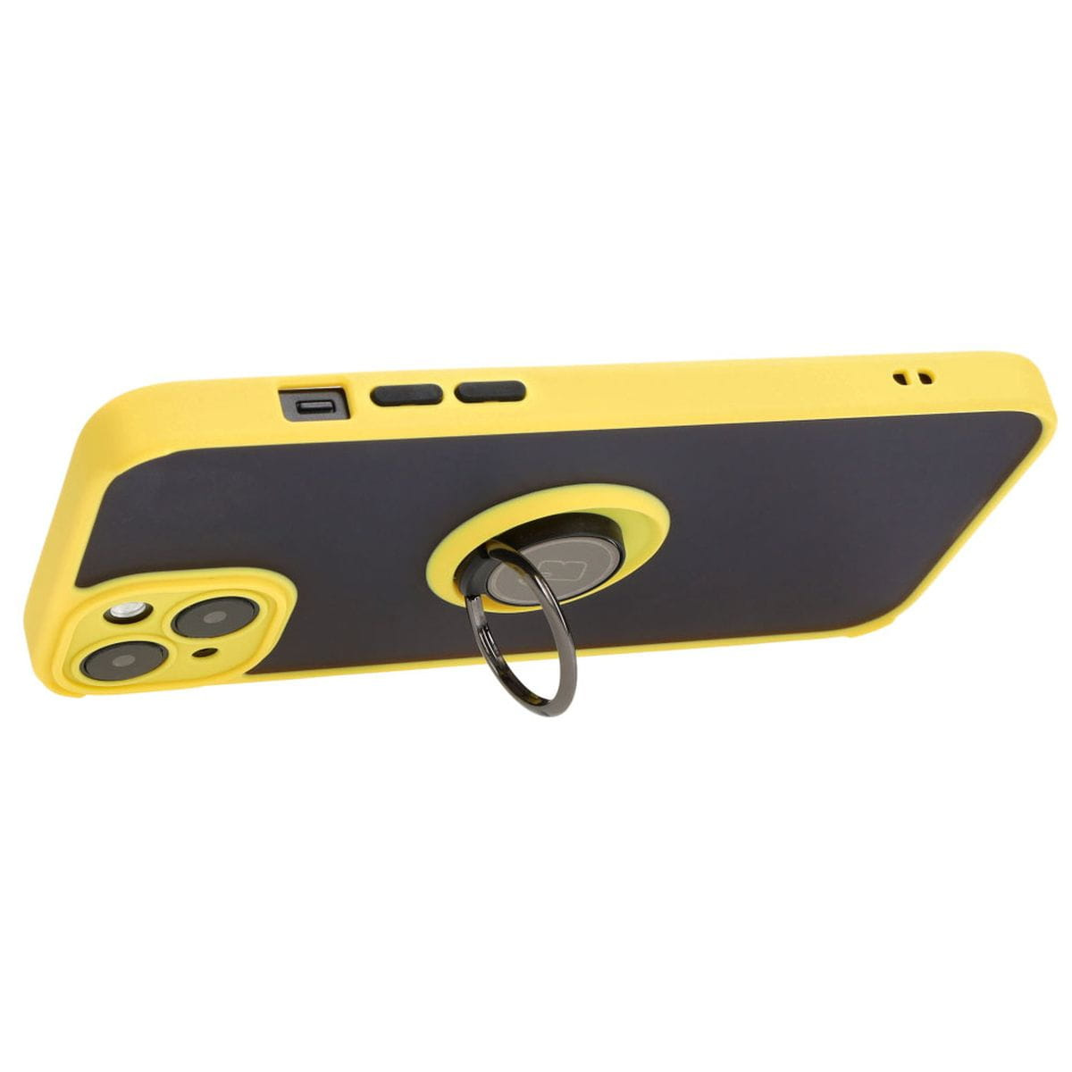 Etui z uchwytem na palec Bizon Case Hybrid Ring do iPhone 15 Plus, przydymione z żółtą ramką