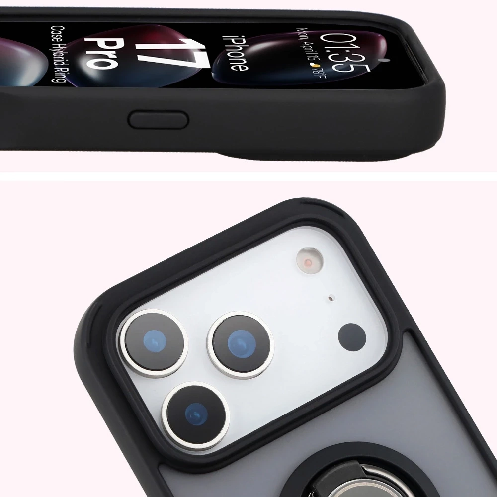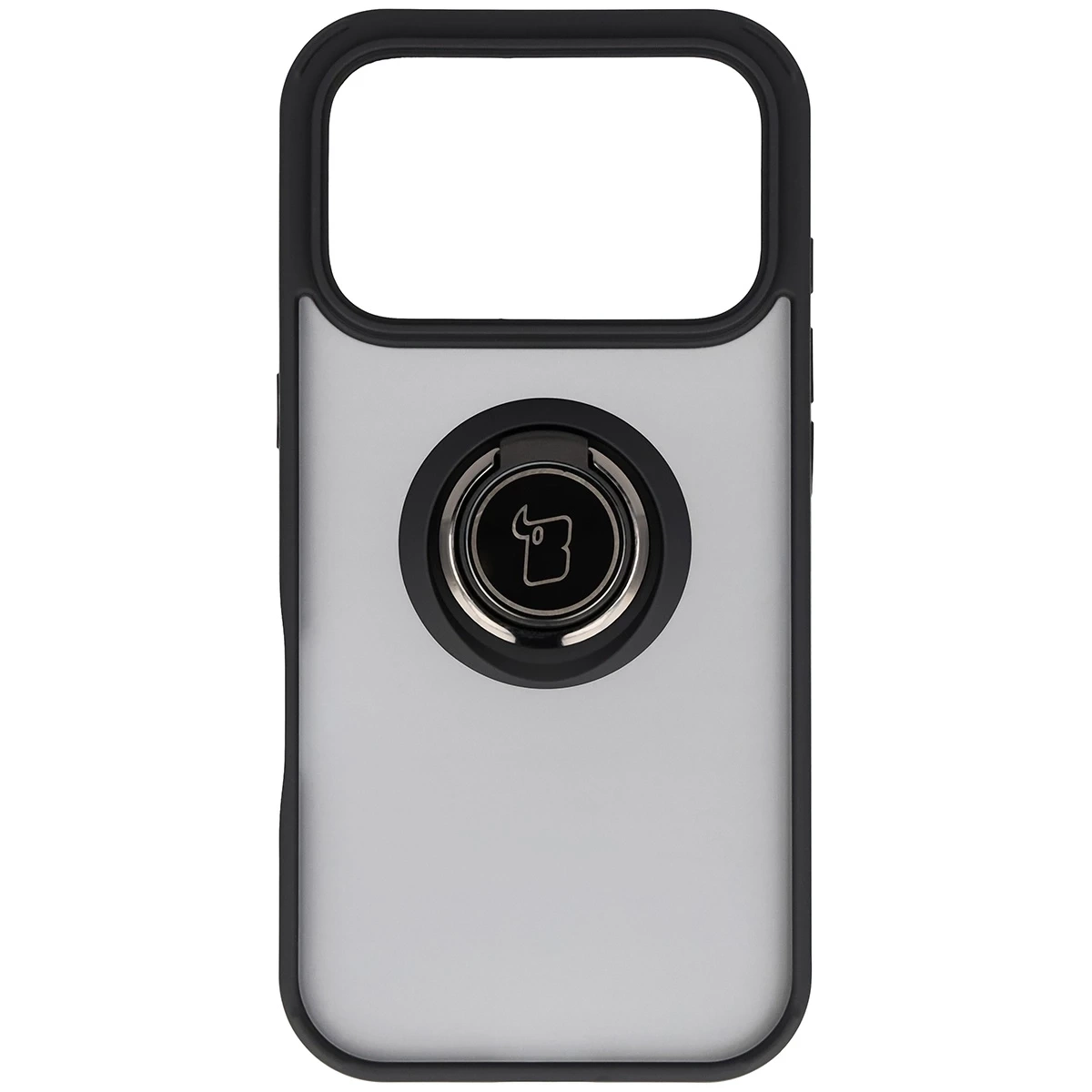 Etui z uchwytem na palec Bizon Case Hybrid Ring do iPhone 17 Pro, przydymione z czarną ramką