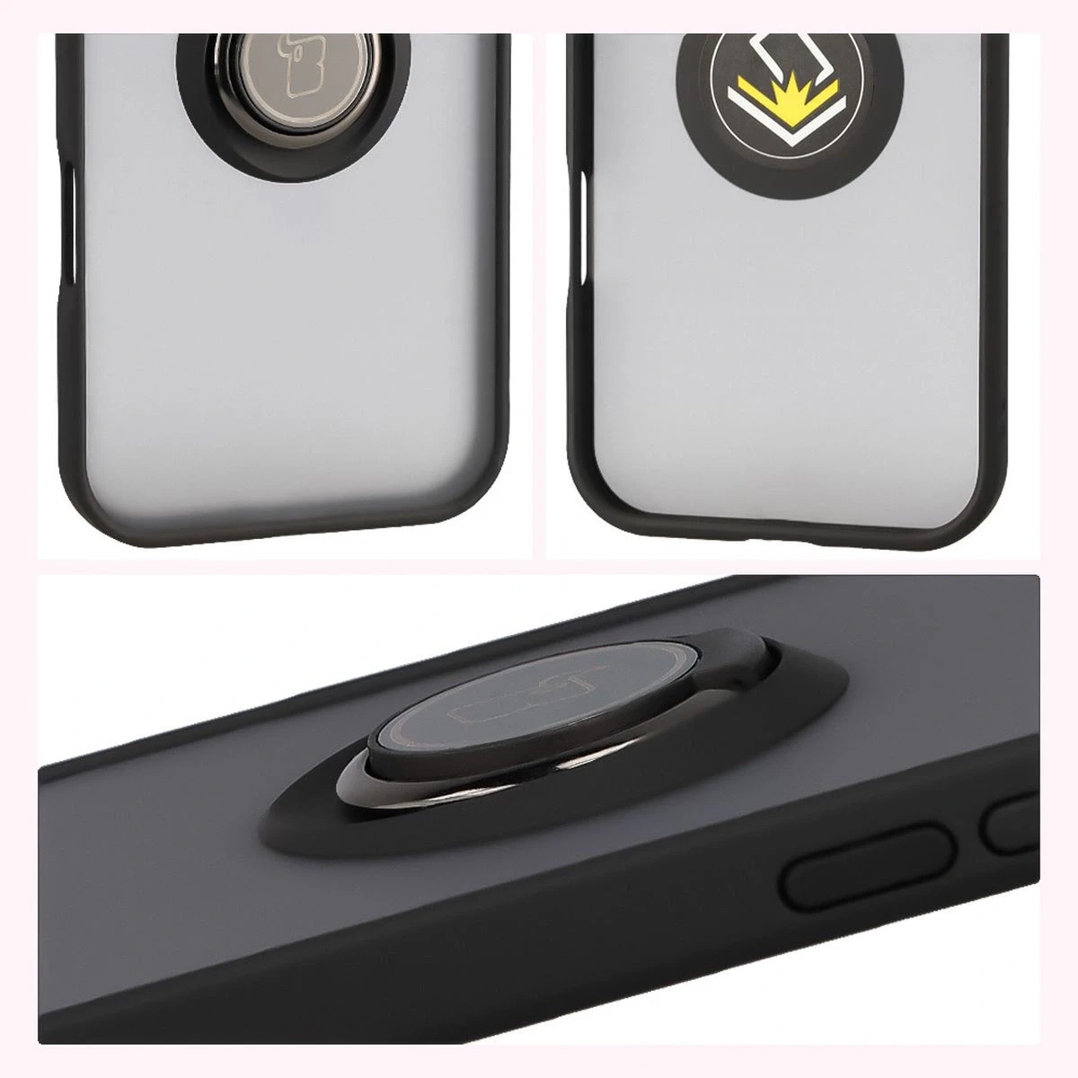 Etui z uchwytem na palec Bizon Case Hybrid Ring do iPhone Air, przydymione z czarną ramką