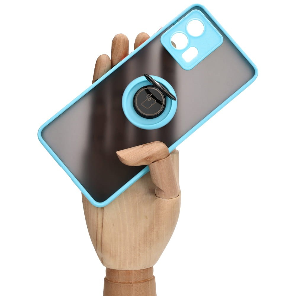 Etui z uchwytem na palec Bizon Case Hybrid Ring do Motorola Edge 30 Fusion, przydymione z jasnoniebieską ramką