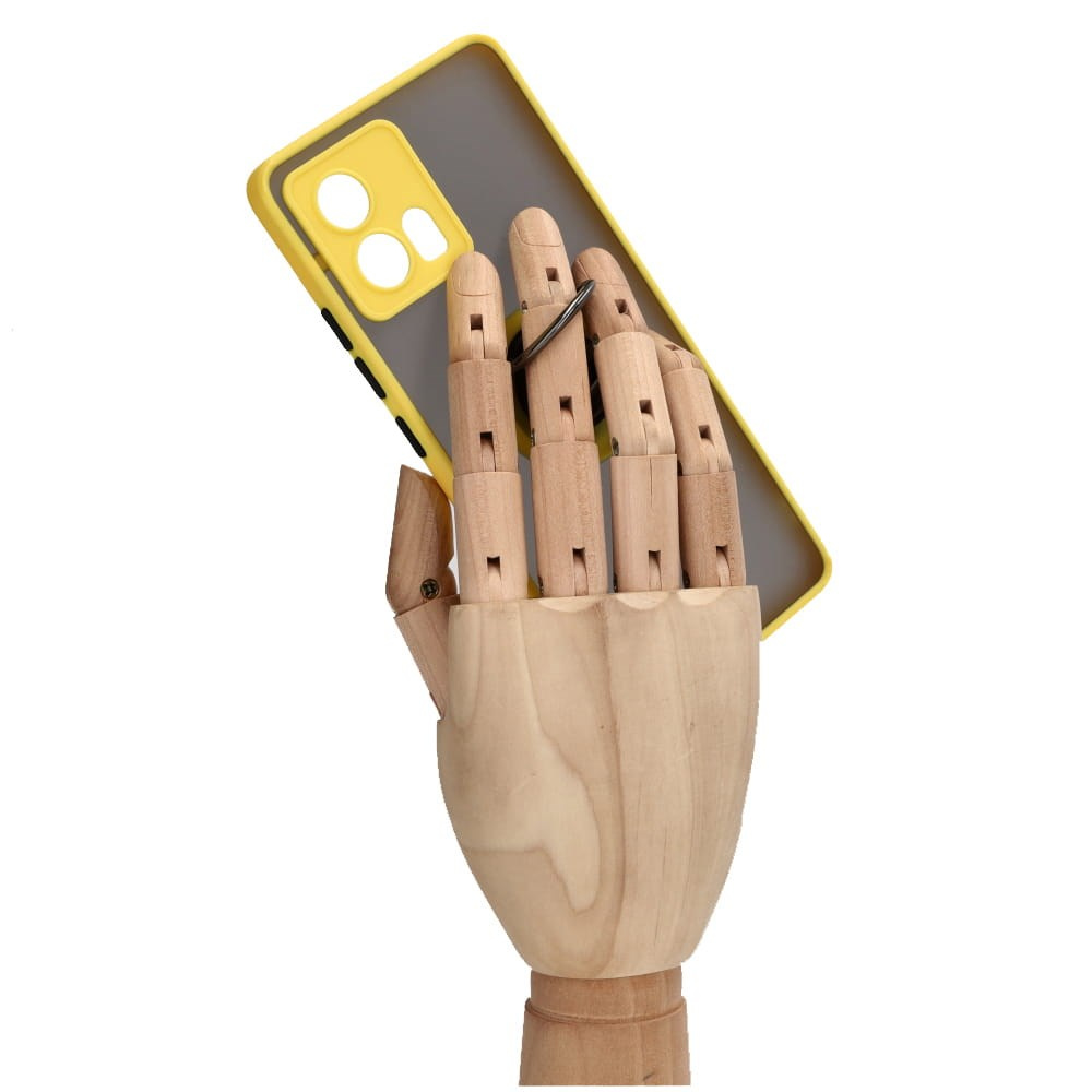 Etui z uchwytem na palec Bizon Case Hybrid Ring do Motorola Edge 30 Fusion, przydymione z żółtą ramką