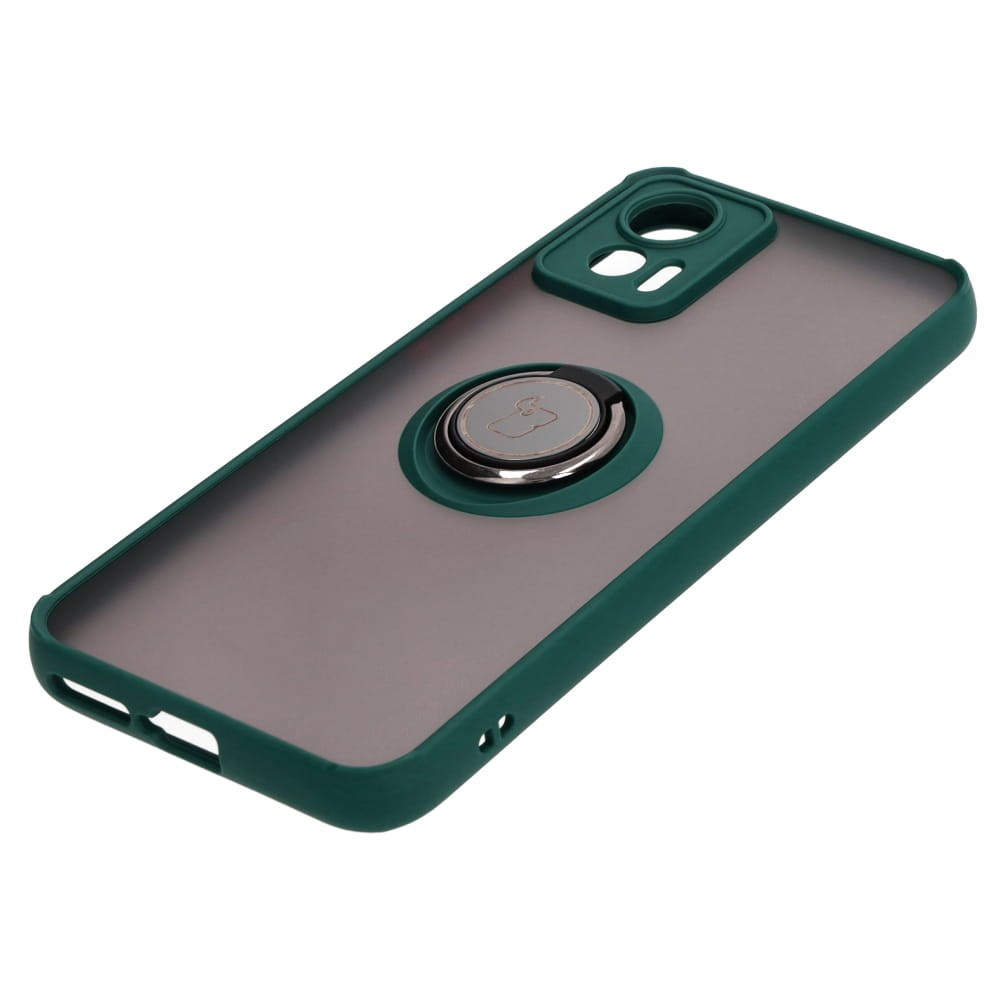 Etui z uchwytem na palec Bizon Case Hybrid Ring do Motorola Edge 30 Neo, przydymione z ciemnozieloną ramką