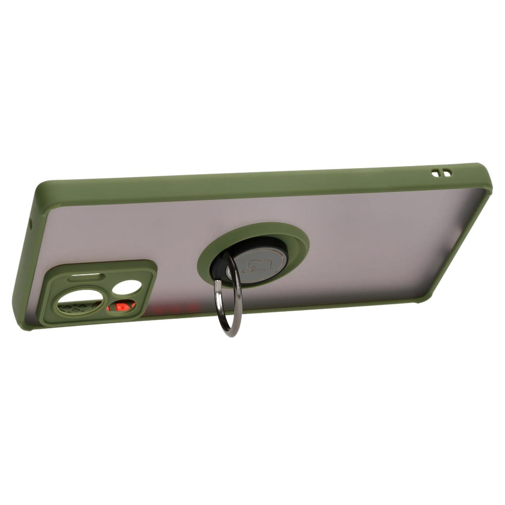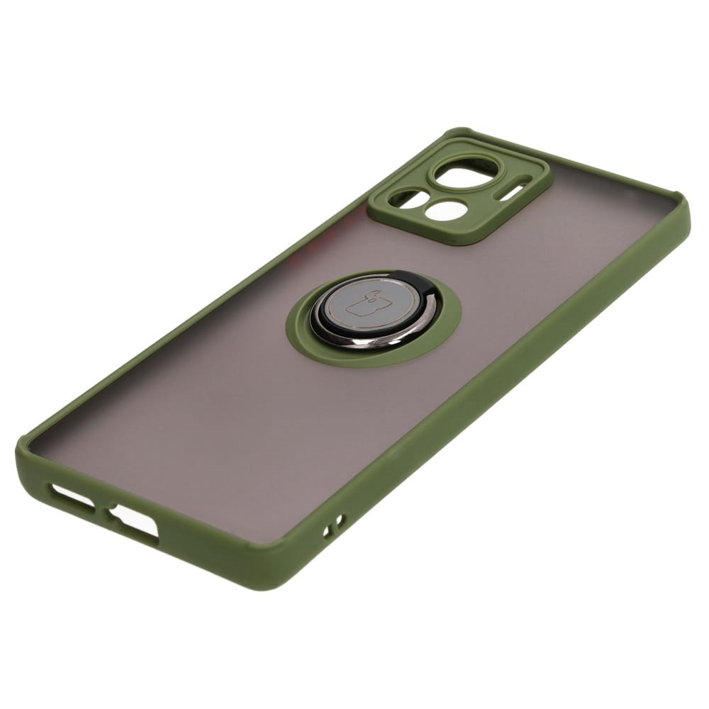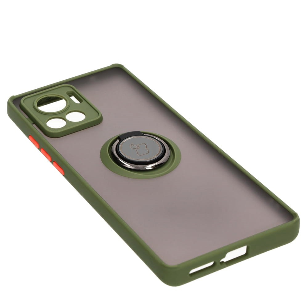 Etui z uchwytem na palec Bizon Case Hybrid Ring do Motorola Edge 30 Ultra, przydymione z zieloną ramką