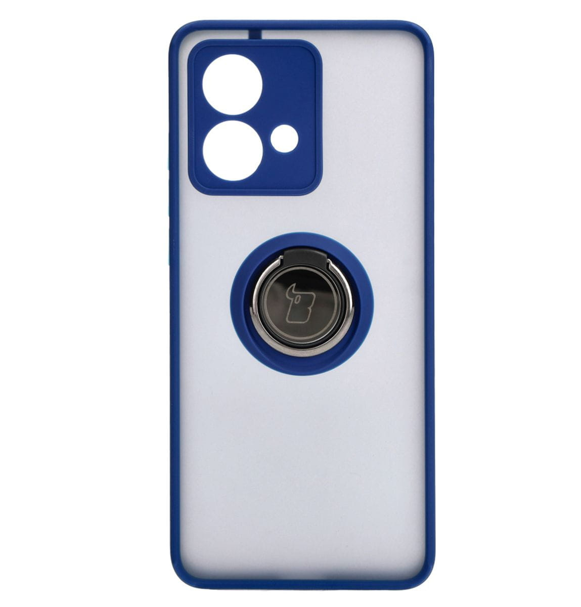 Etui z uchwytem na palec Bizon Case Hybrid Ring do Motorola Edge 40 Neo, przydymione z granatową ramką